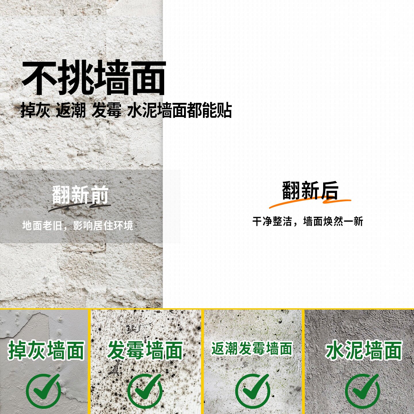 白色贴纸掉灰墙面修补贴乳胶漆墙老化掉皮遮挡裂缝改造装饰美化贴