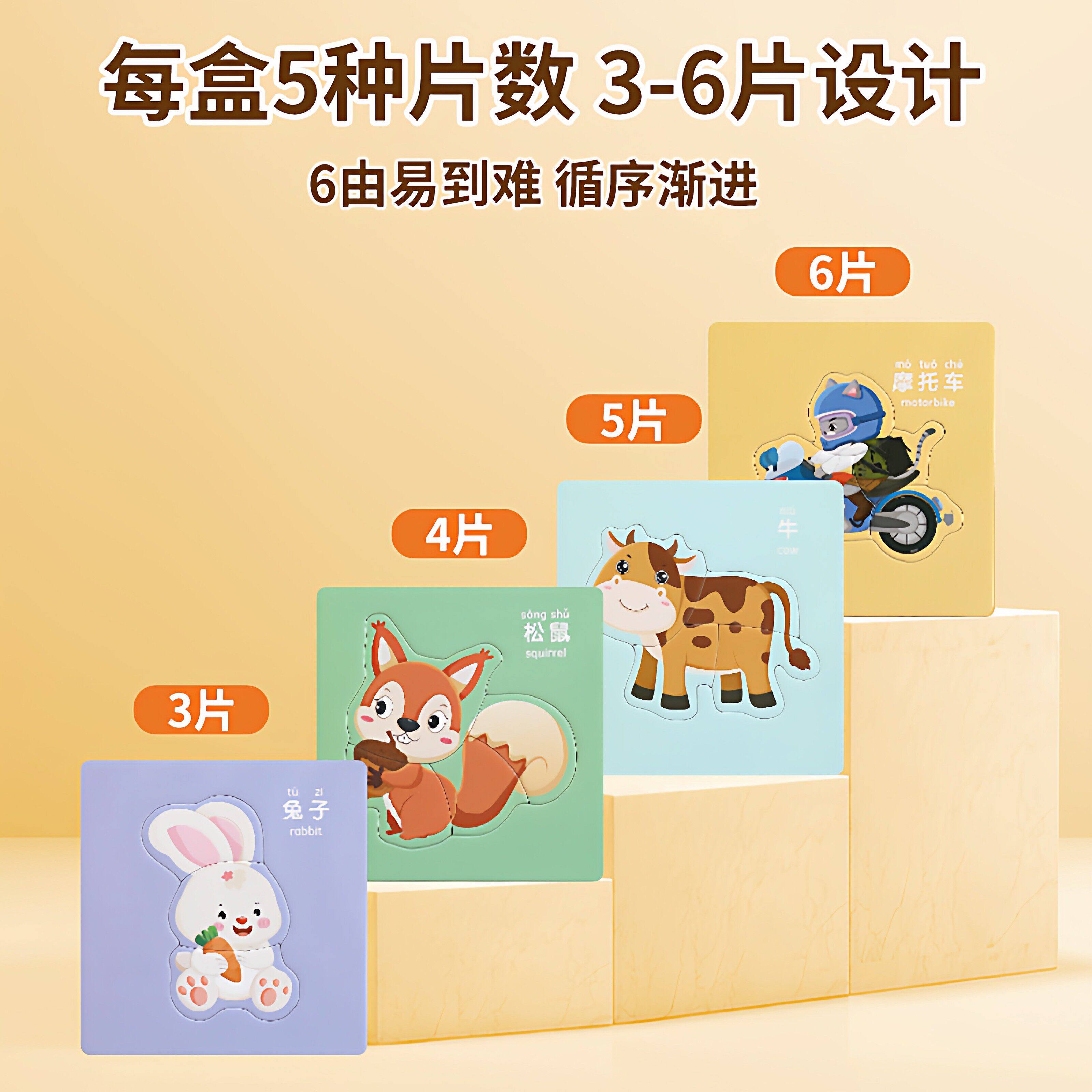 儿童益智拼图0一1岁半2到3岁-6宝宝幼儿动物蒙氏早教智力开发玩具