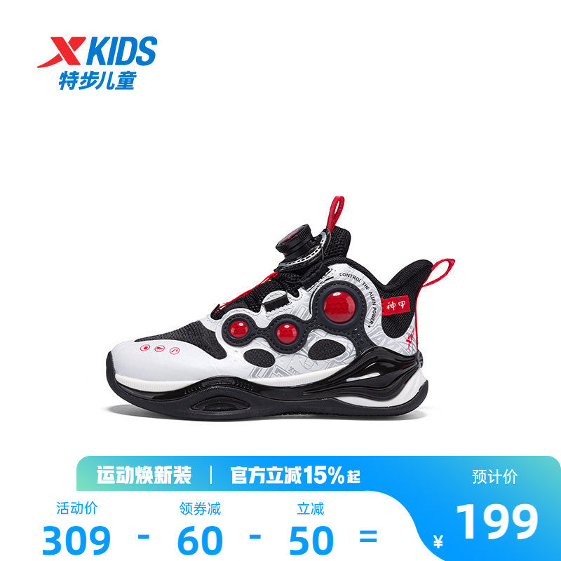 特步童鞋儿童运动鞋春秋季新款男童缓震耐磨幼小童旋转纽扣篮球鞋
