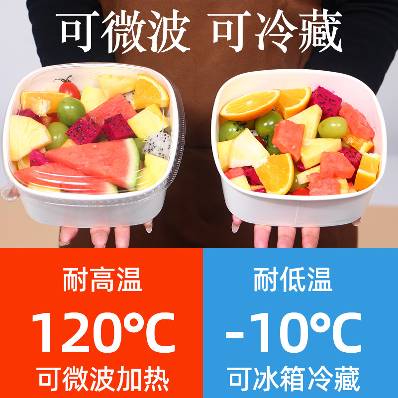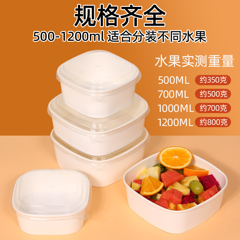 一次性餐盒白色正方形果切盒食品级牛皮纸鲜水果打包盒外卖果切盒