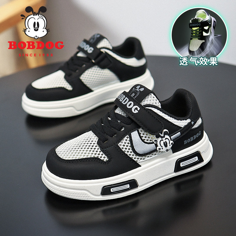 巴布豆低帮板鞋男童单网鞋夏季镂空网面透气小学生休闲儿童运动鞋