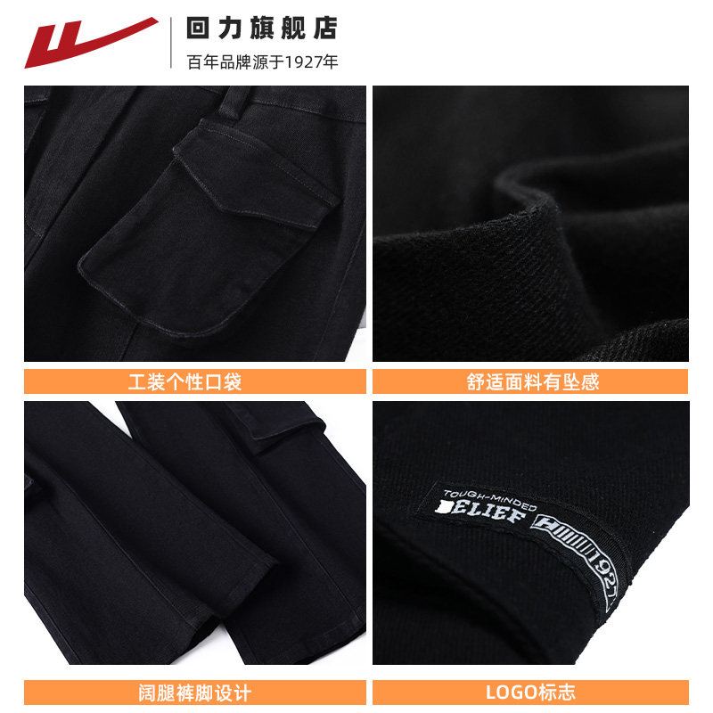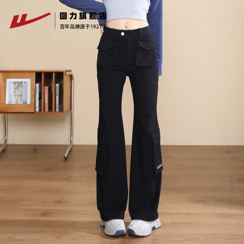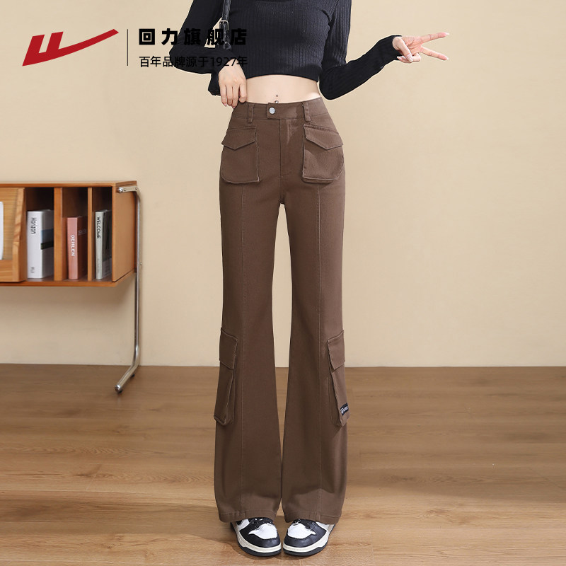 回力美式工装裤女款春秋2025新款小个子显高腰显瘦微喇叭休闲裤子