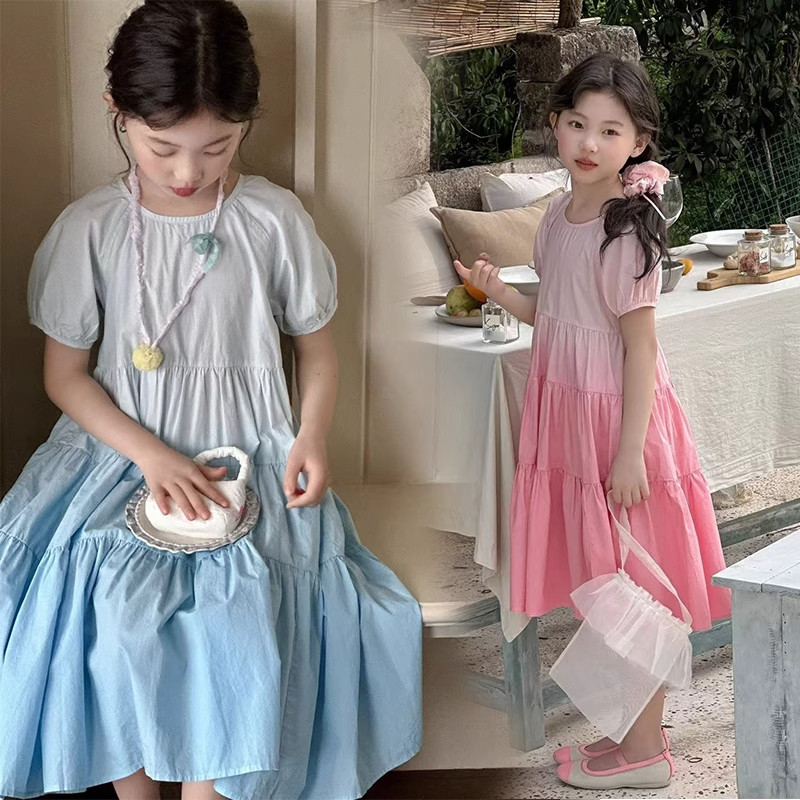 女童裙子高级感夏季连衣裙渐变公主裙风中大童女孩夏装泡泡袖长裙