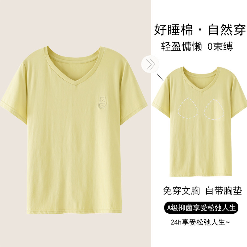 单件上衣睡衣女款夏季薄款短袖T恤带胸垫可外穿大码胖mm家居服