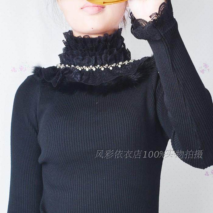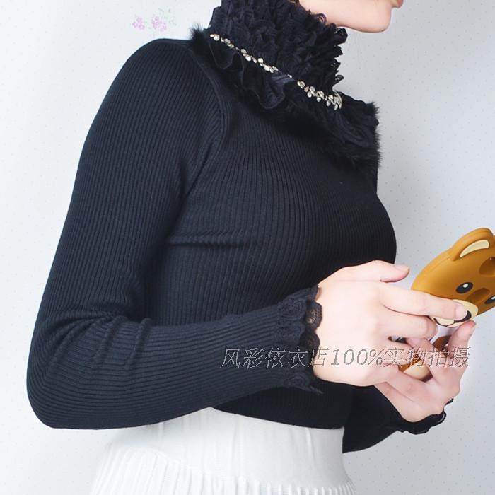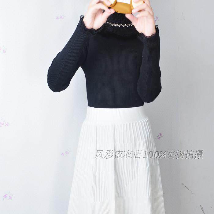 2026秋冬新款针织毛衣打底衫长袖蕾花边修身显瘦女款套头镶钻潮衣