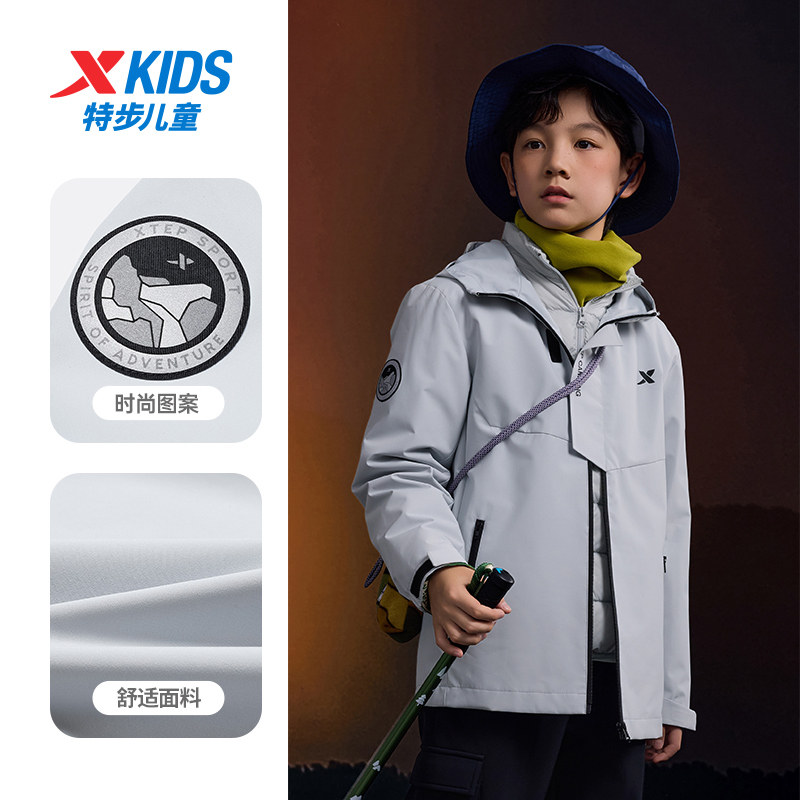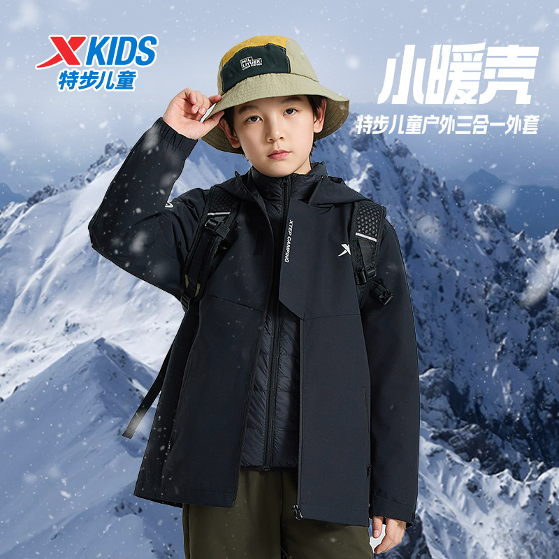 【小暖壳】特步童装儿童三合一外套男童冬季羽绒服外套三防两件套