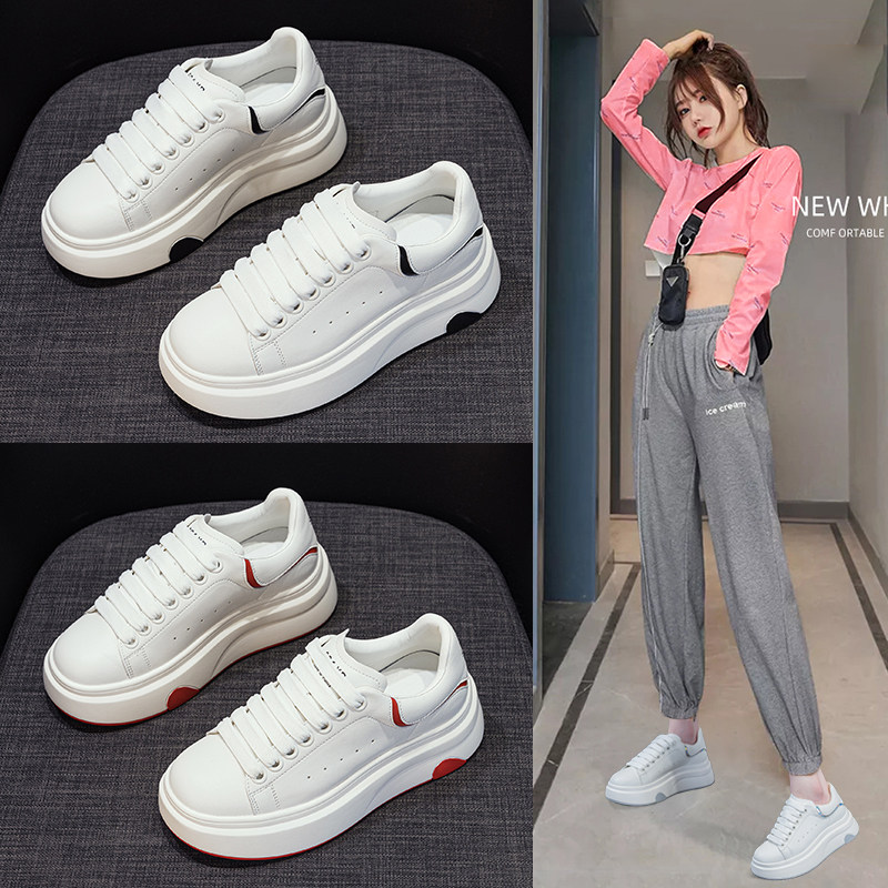 真皮爱心小白鞋女鞋厚底秋季新款百搭轻便时尚休闲板鞋增高运动鞋