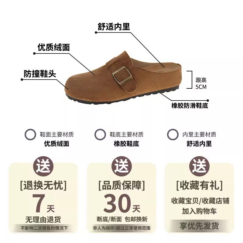 内增高勃肯包头半拖鞋女外穿2025新款春夏季爆款配裙子复古凉拖鞋