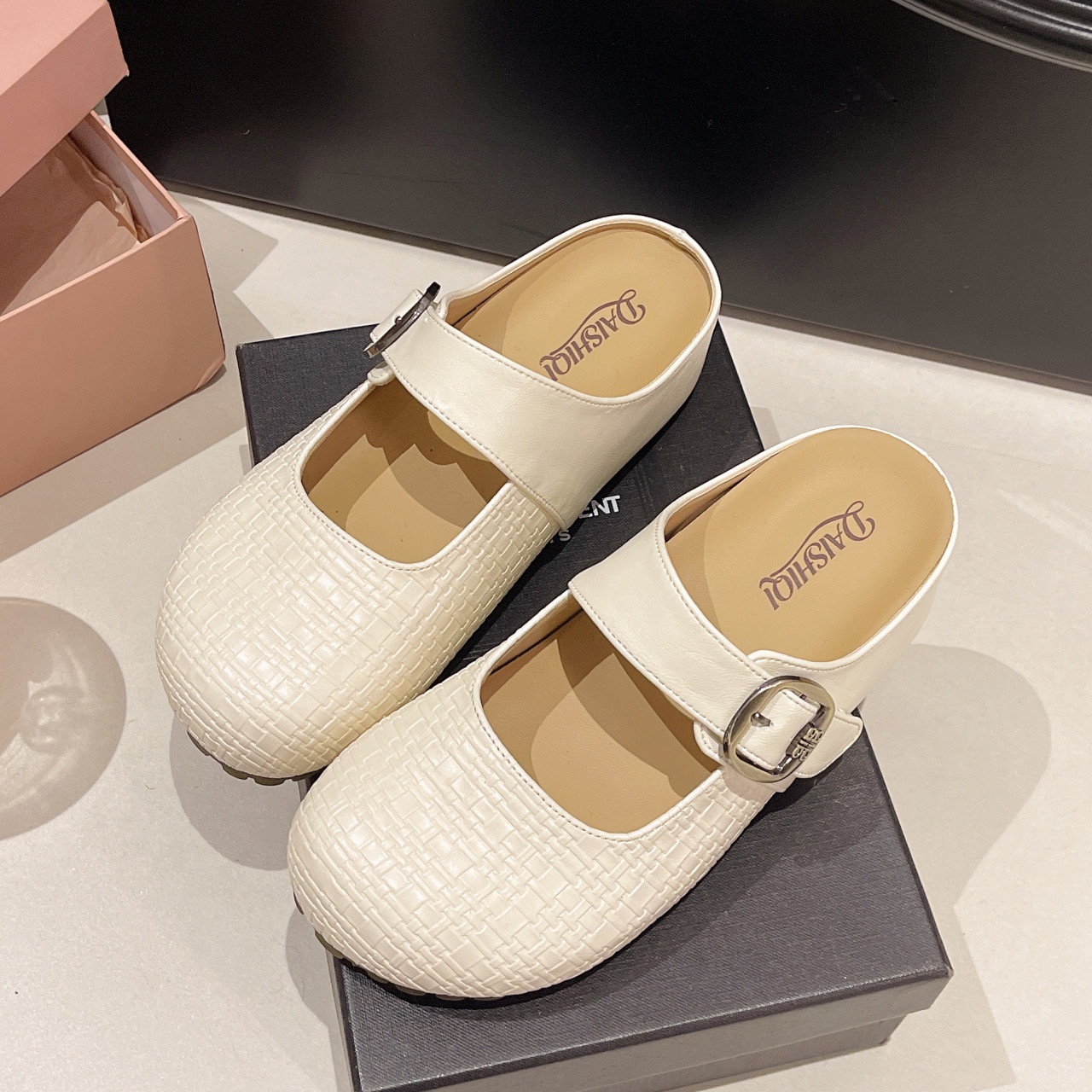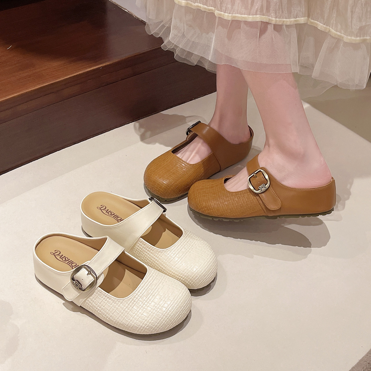 复古包头勃肯半拖鞋女2026春夏新款配裙子内增高玛丽珍鞋浅口单鞋