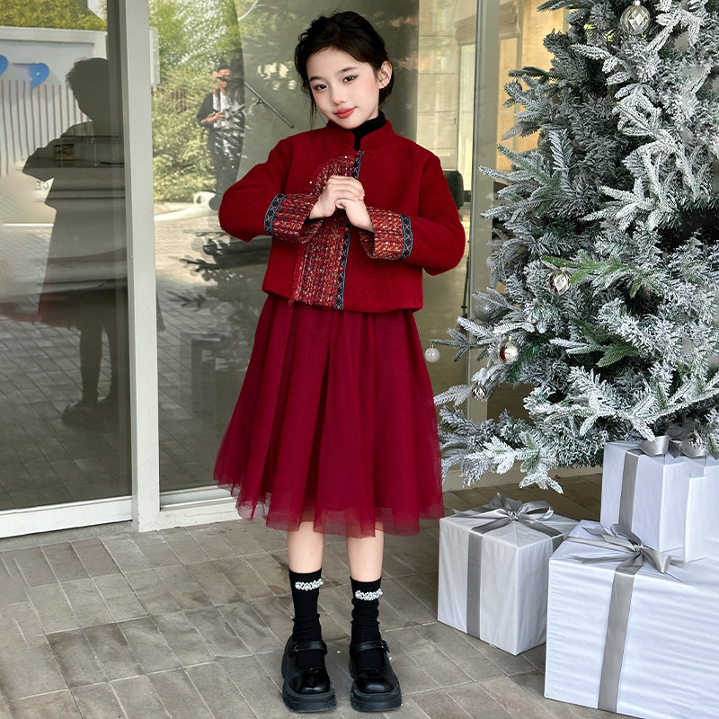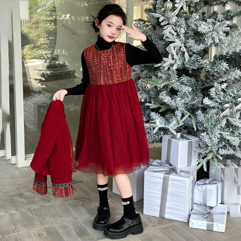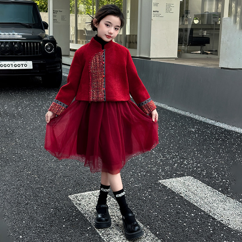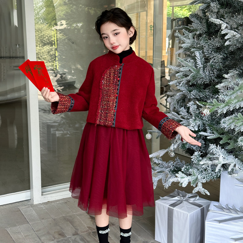 女童秋冬连衣裙2026新款红色加厚公主裙子冬季大童新年衣服拜年服