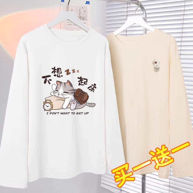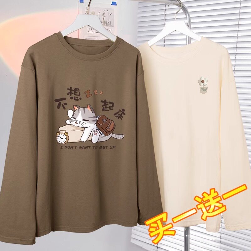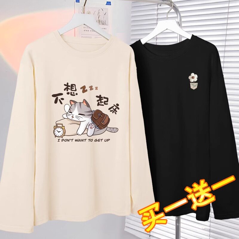长袖t恤女初中学生秋装2024新款洋气减龄上衣纯棉薄款秋季女装秋