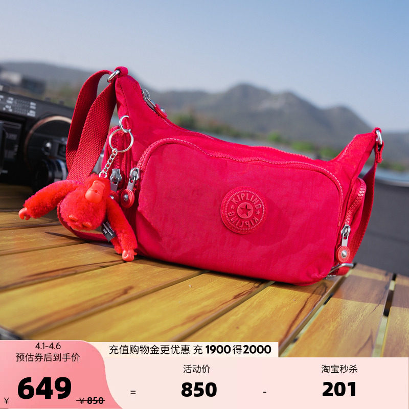 kipling女款2026春夏新款出行帆布单肩斜挎包牛角包|GABBETTE S