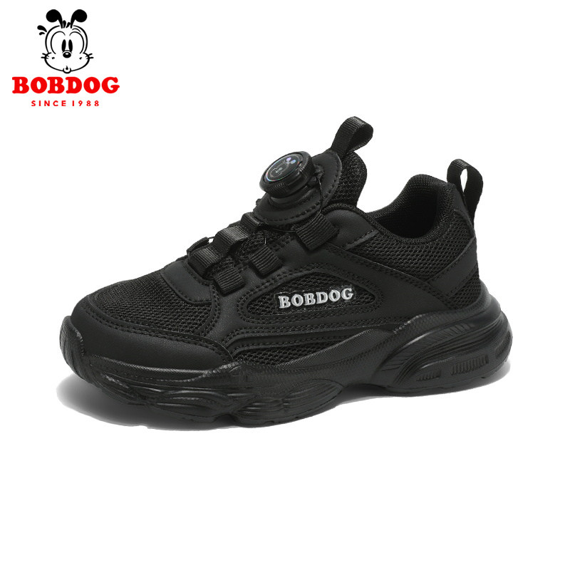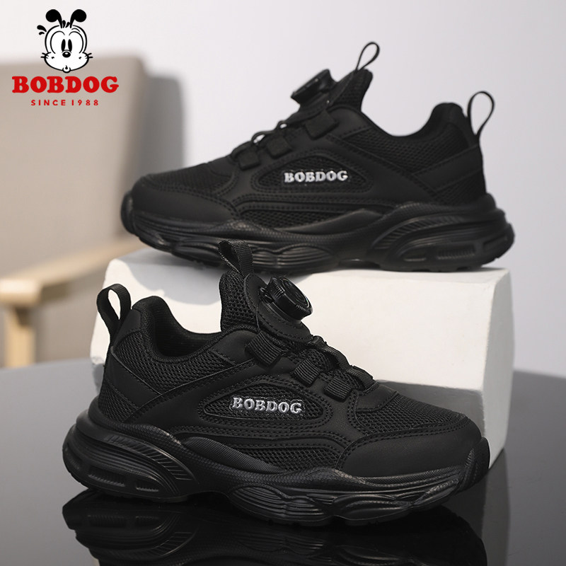 巴布豆童鞋男童鞋春秋2026新款网面透气女童跑步鞋黑色儿童运动鞋