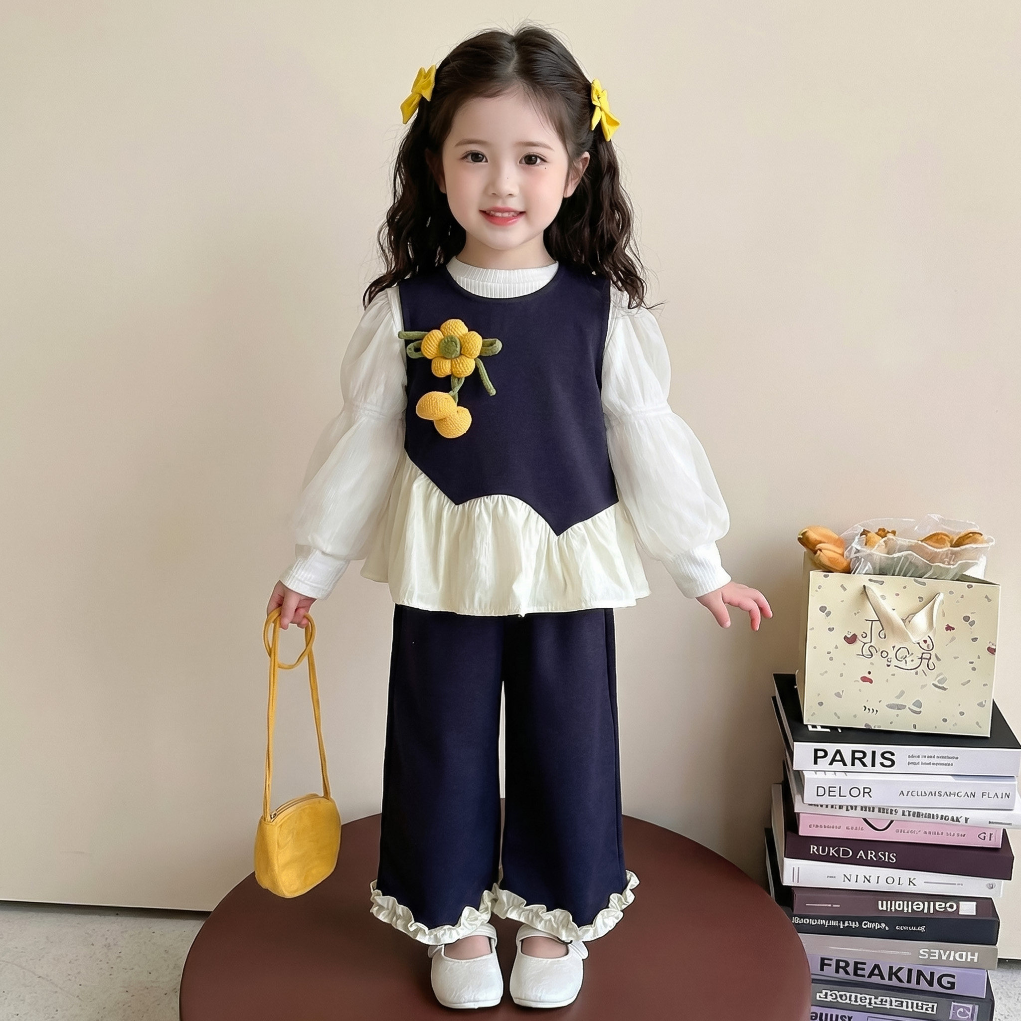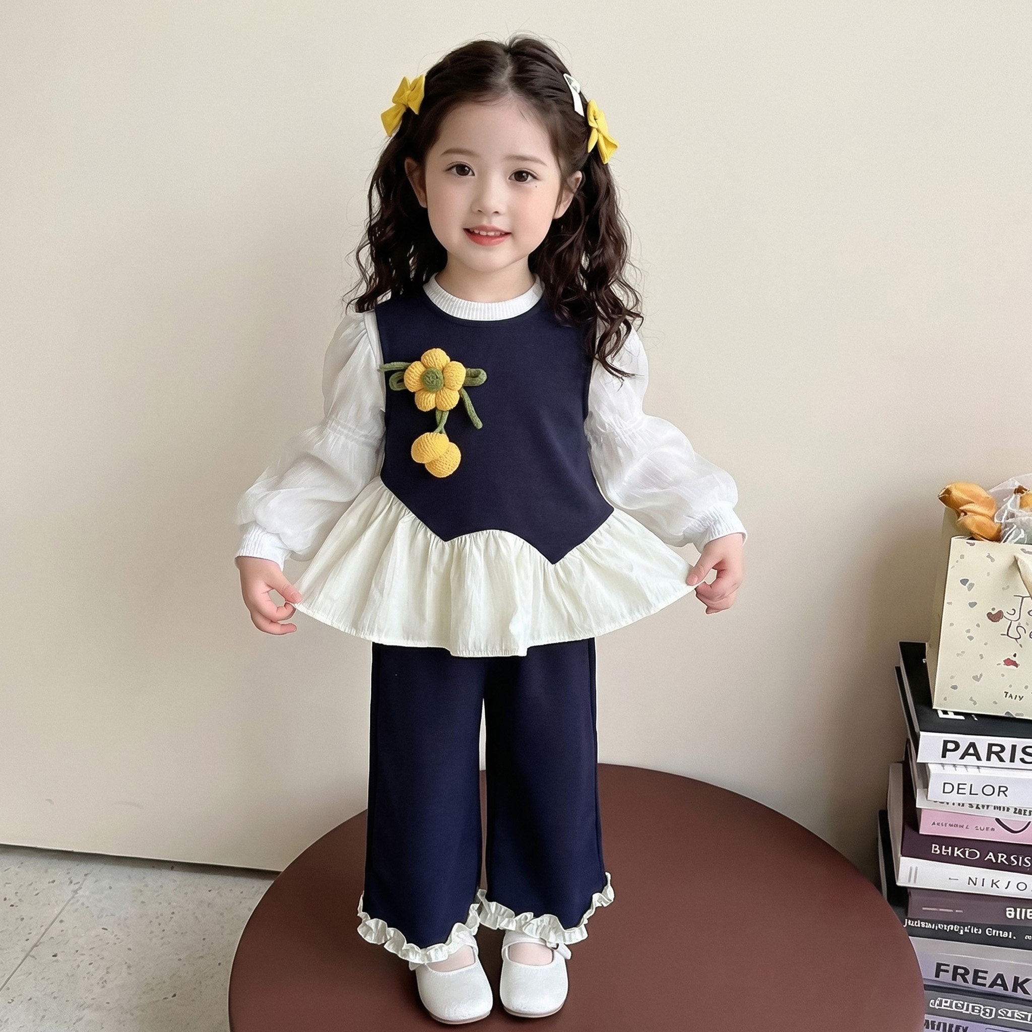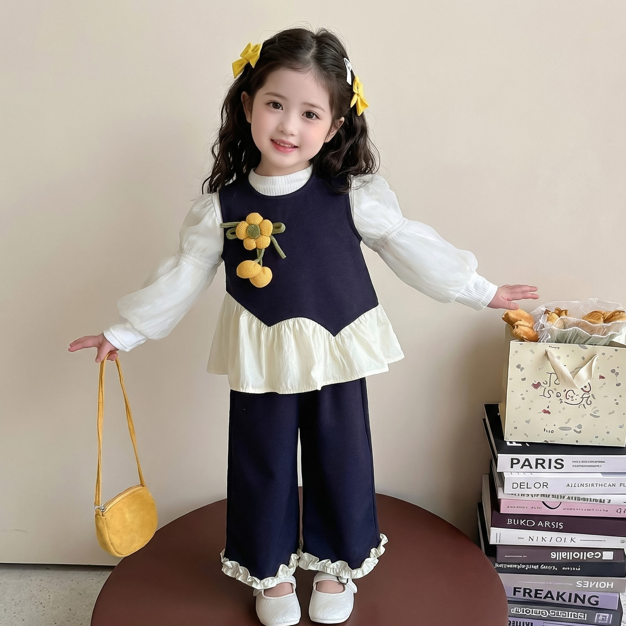 女童春秋款花朵三件套装2026新款洋气时髦儿童女宝宝春季春装早春