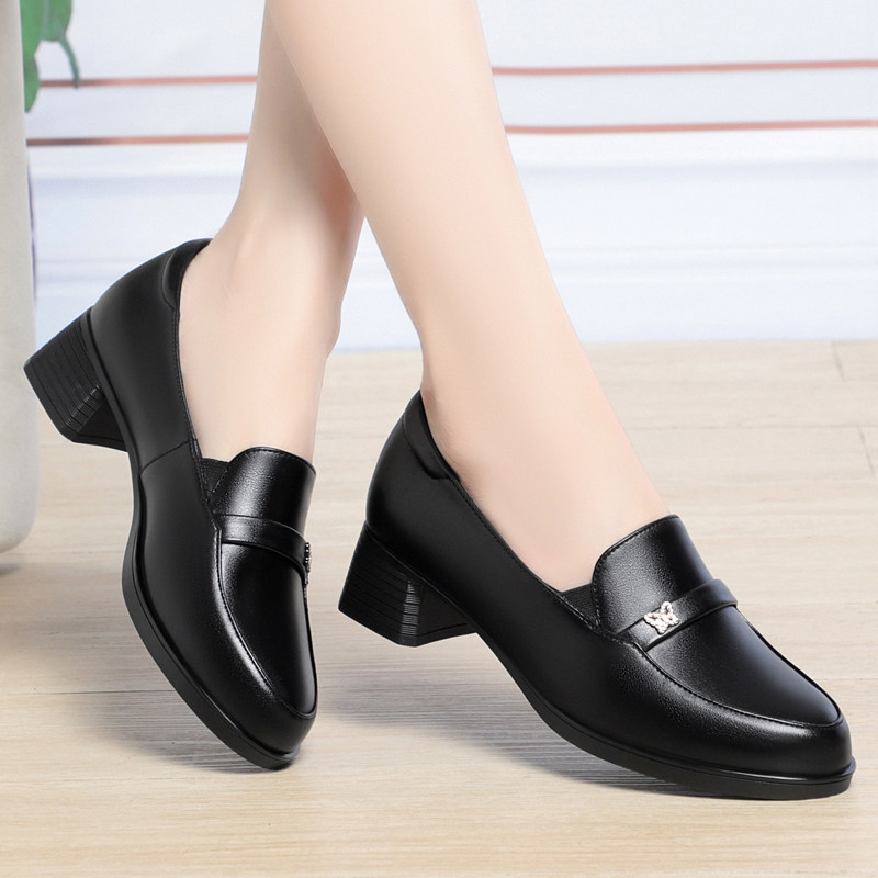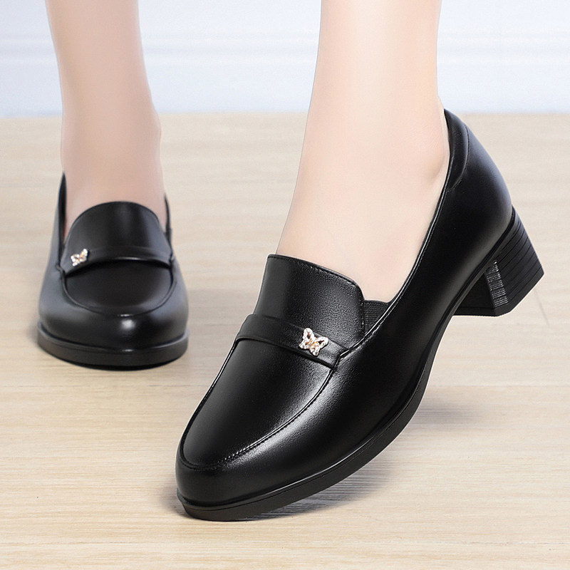 意尔康2026春季新款女单鞋正品真皮女鞋时尚休闲粗跟中跟软牛皮鞋