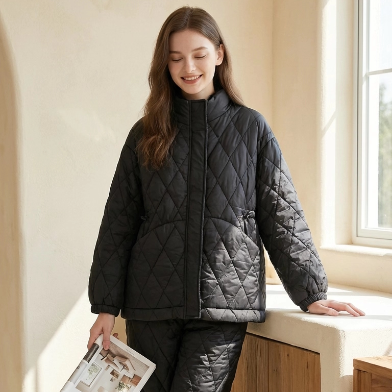 芬腾专柜女冬季三层加绒加厚夹棉加厚保暖显瘦拉链可外穿家居服套
