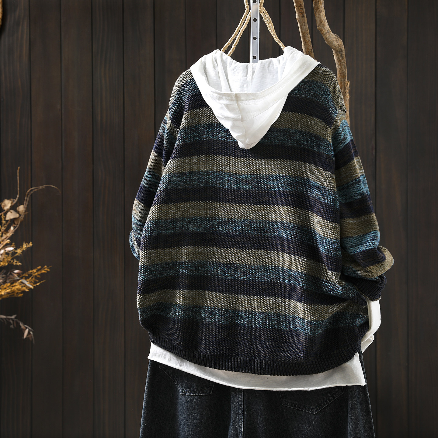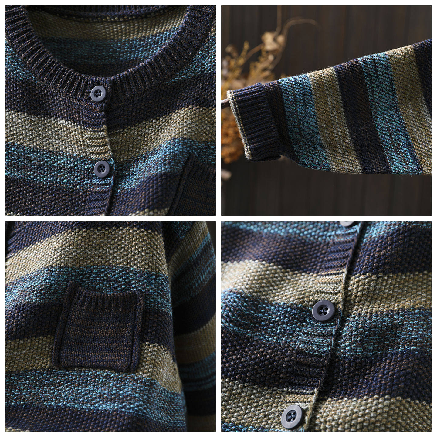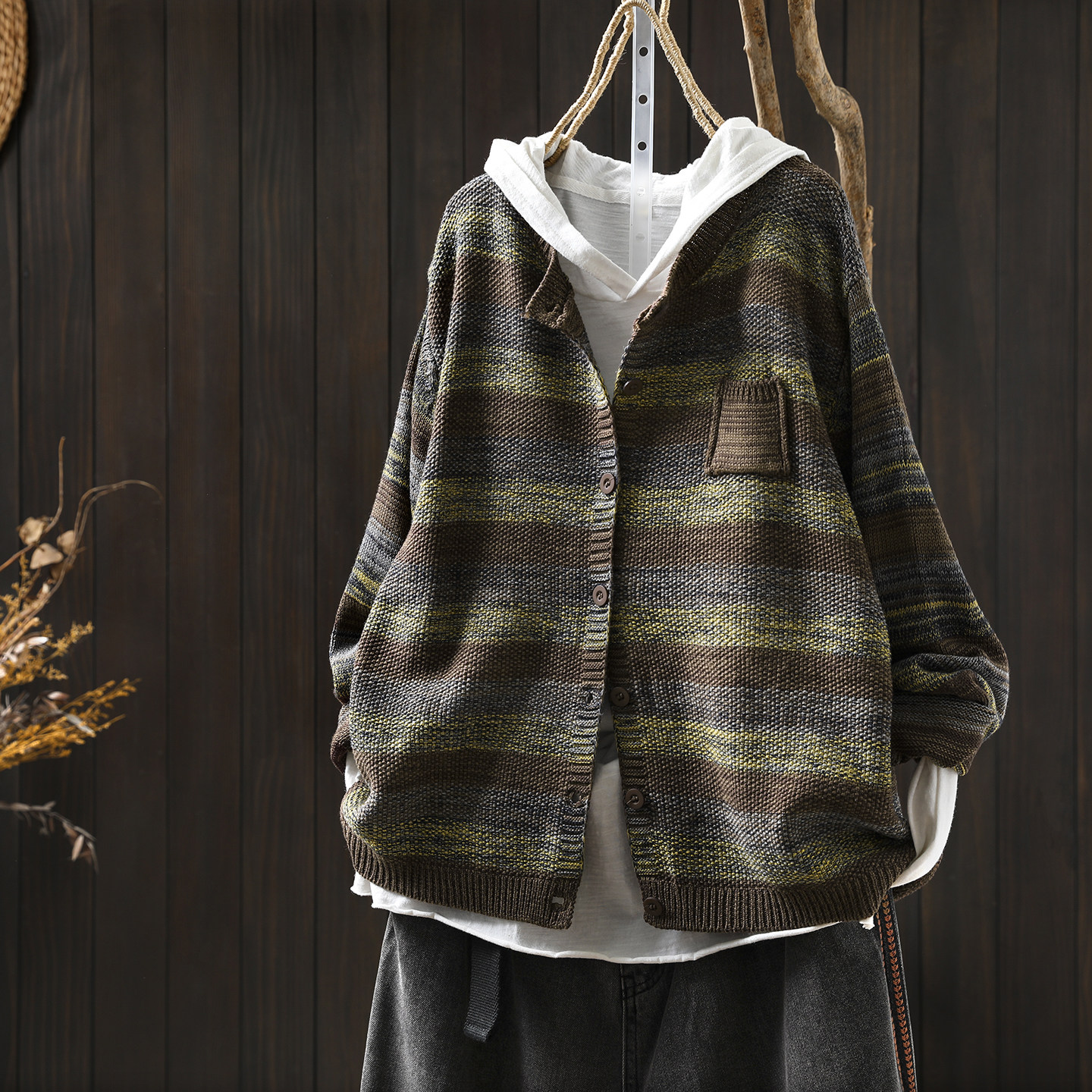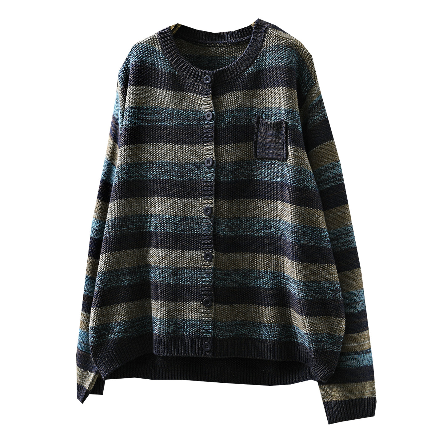 巨好看的春装上衣女款2026新款复古条纹棉线针织宽松休闲开衫外套