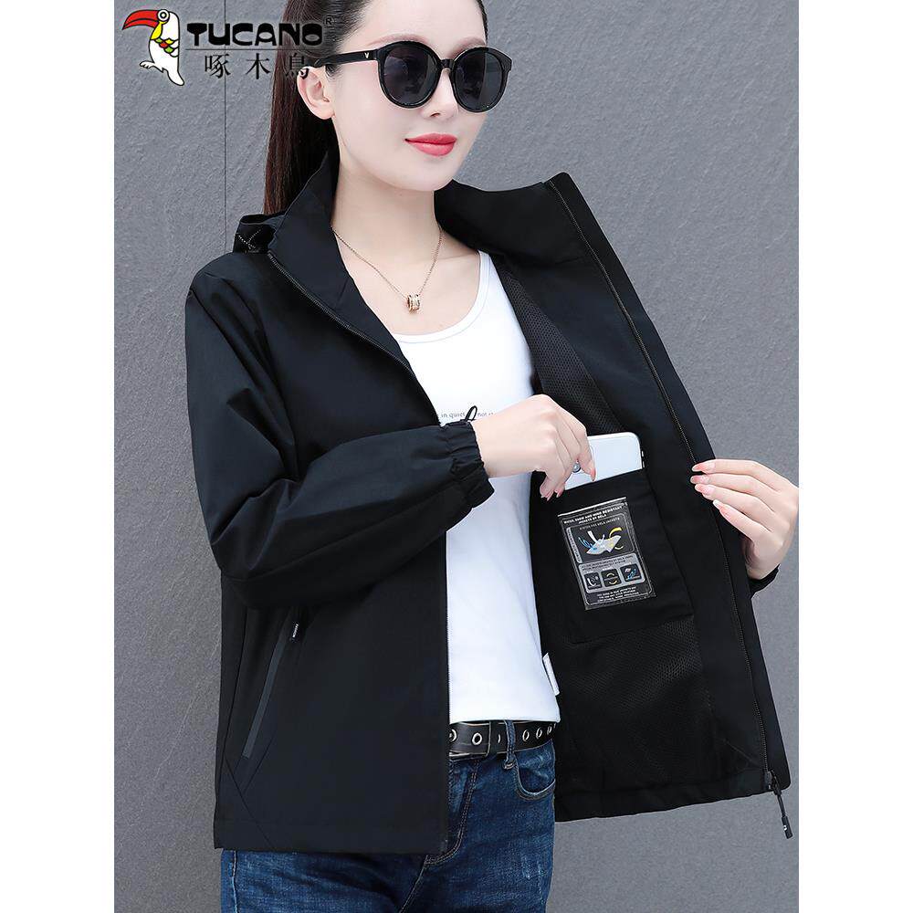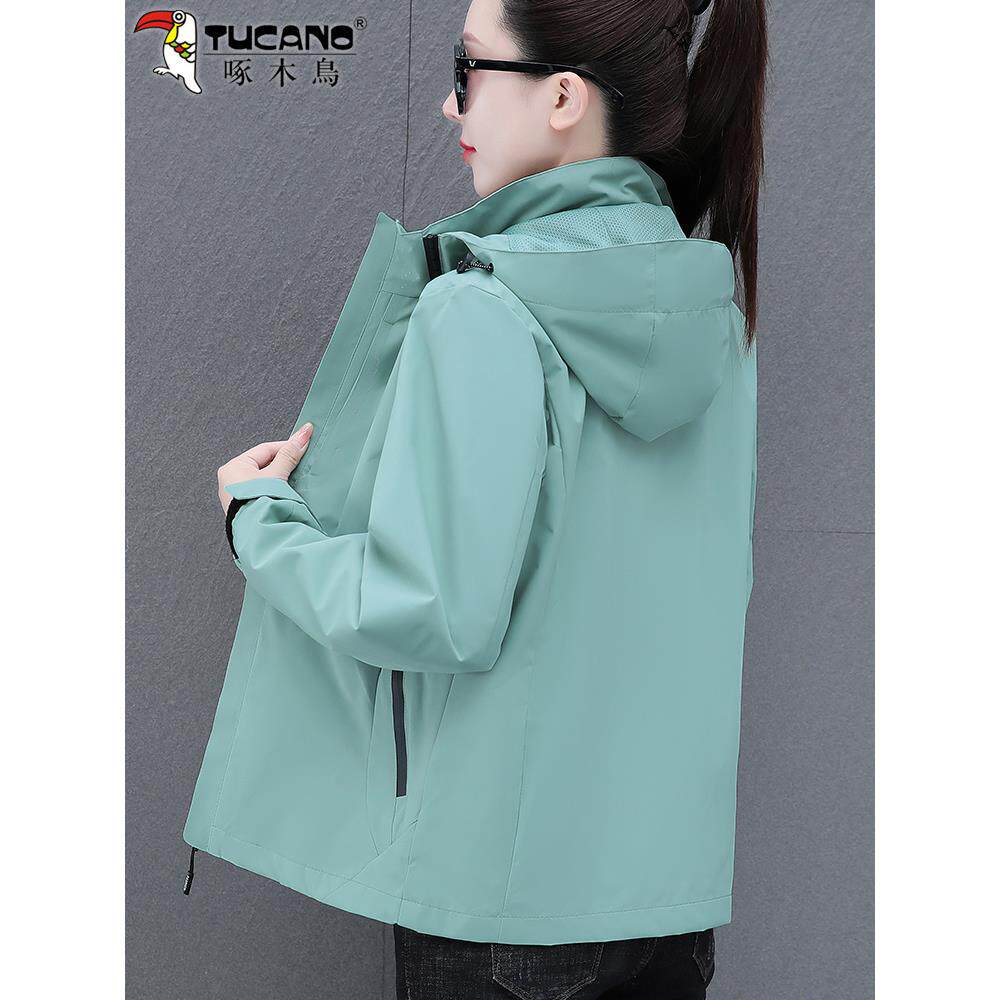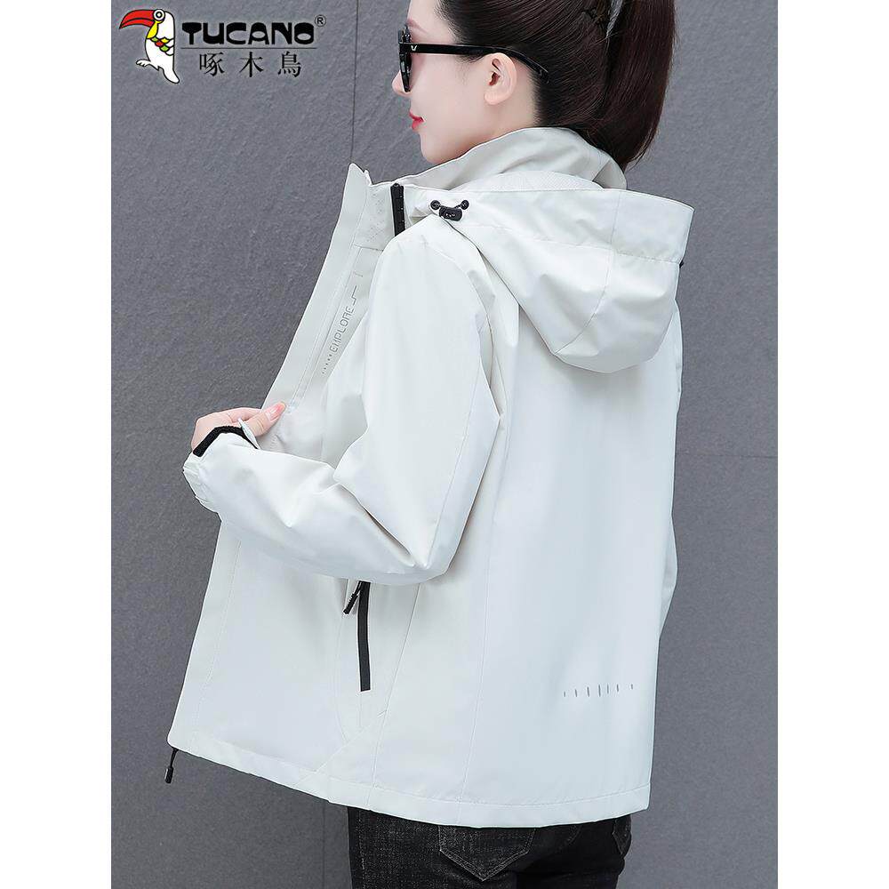 啄木鸟户外冲锋衣女款春秋2025新款宽松休闲防风防水百搭夹克外套