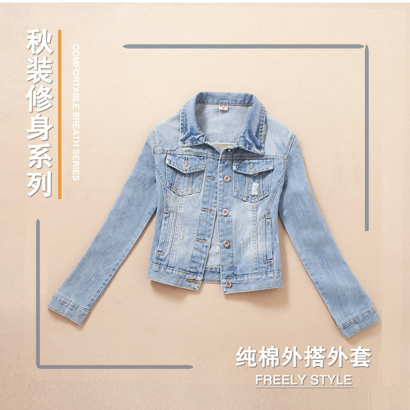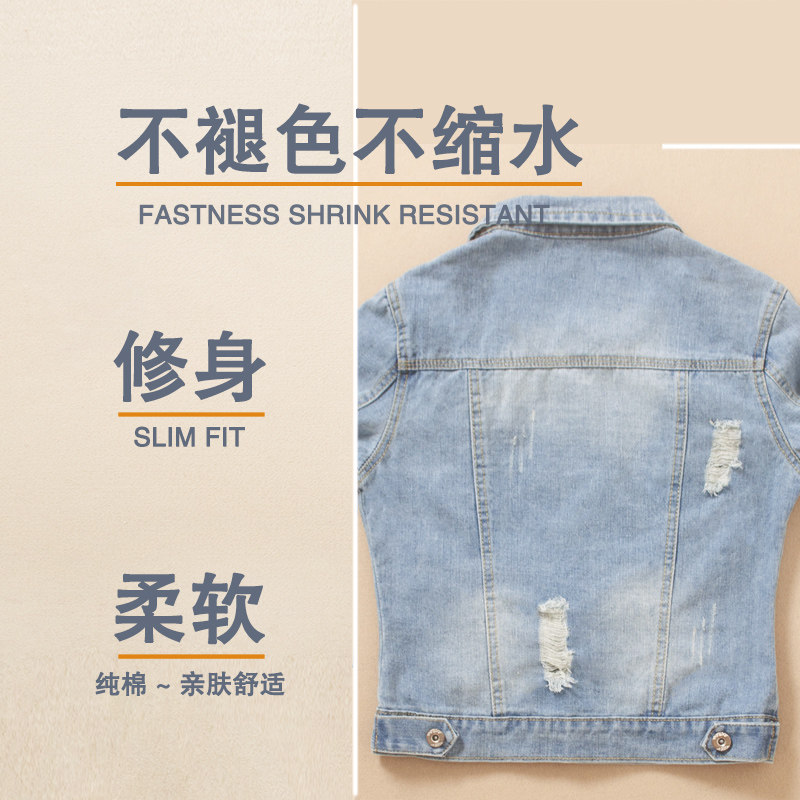 牛仔衣外套个性潮酷女款正肩破洞春季大码小个子修身美式复古夹克