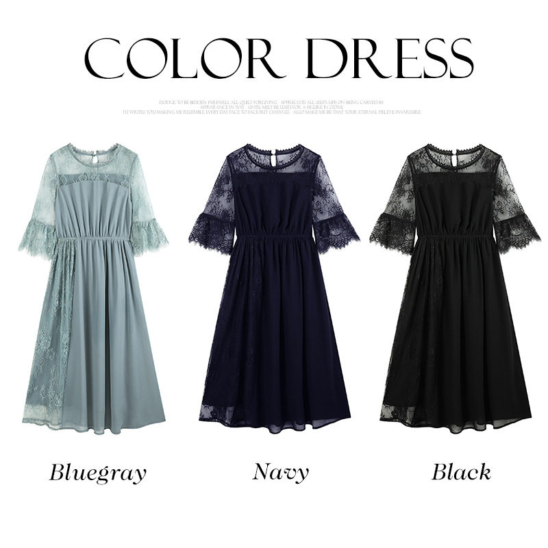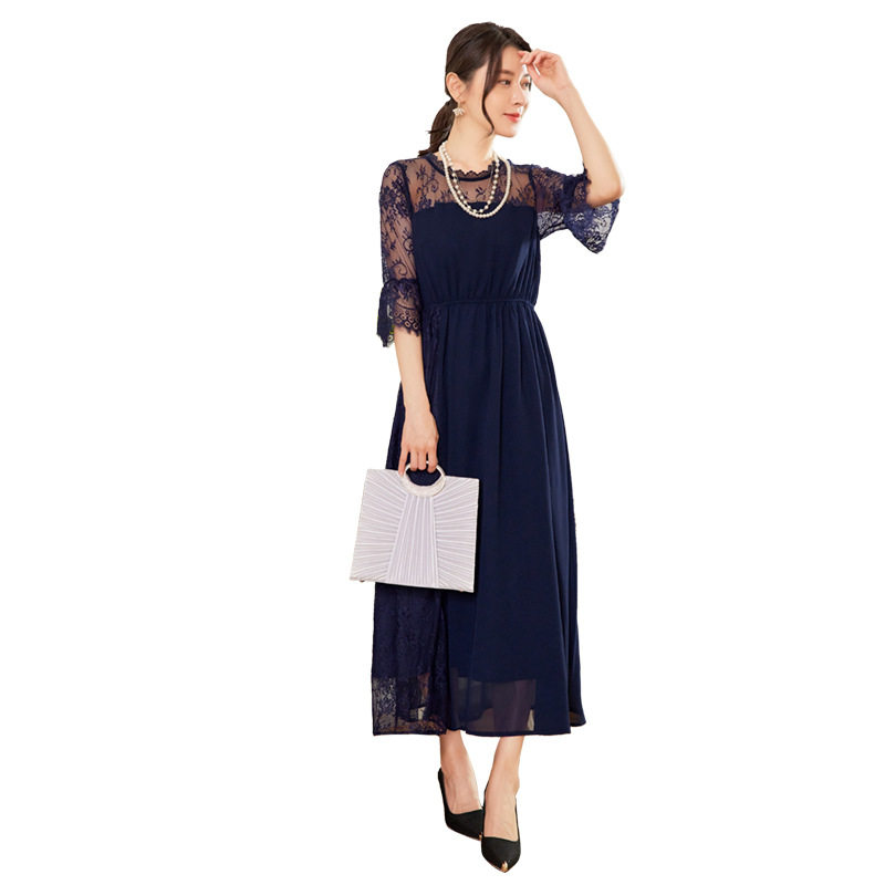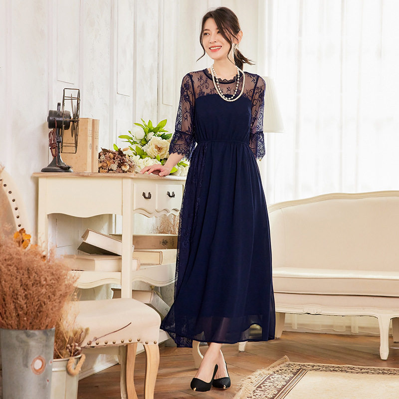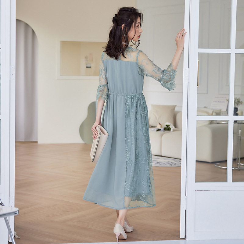 新款夏拼接雪纺连衣裙长裙子女蕾丝婚礼日常可穿小礼服长款88532