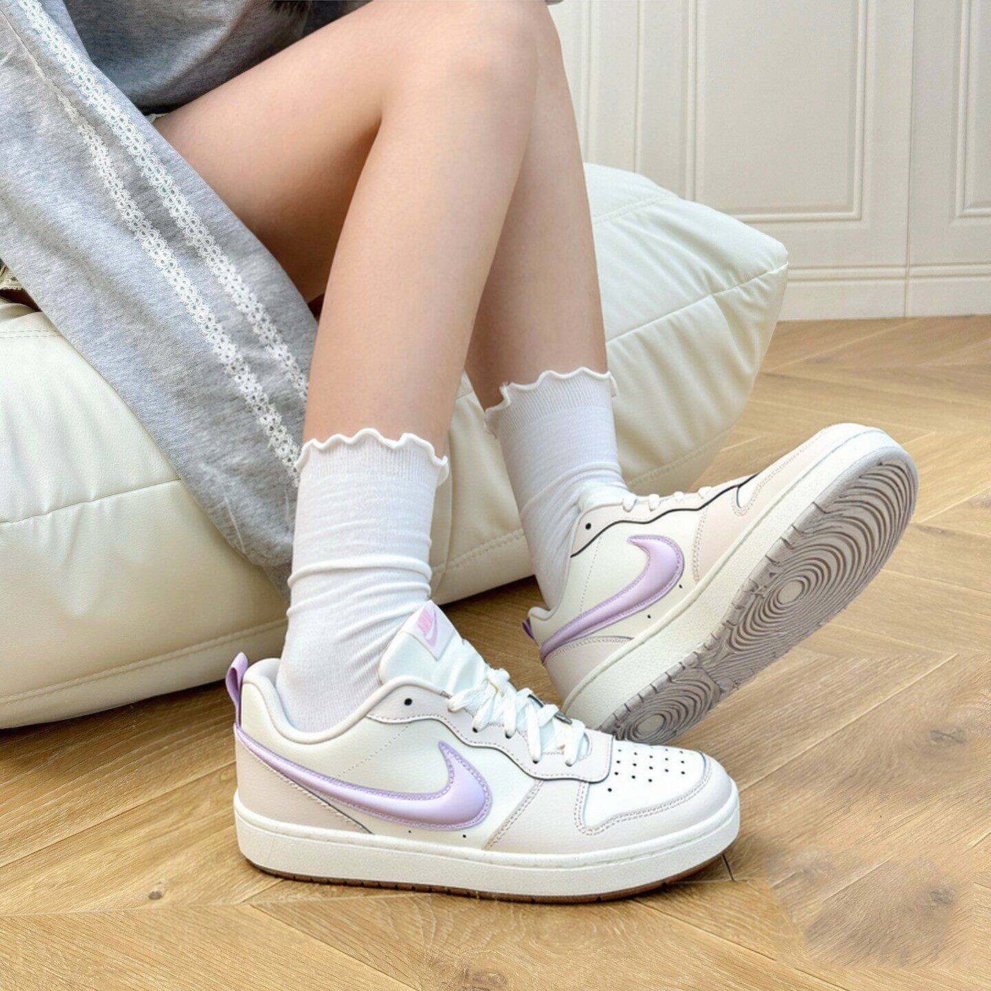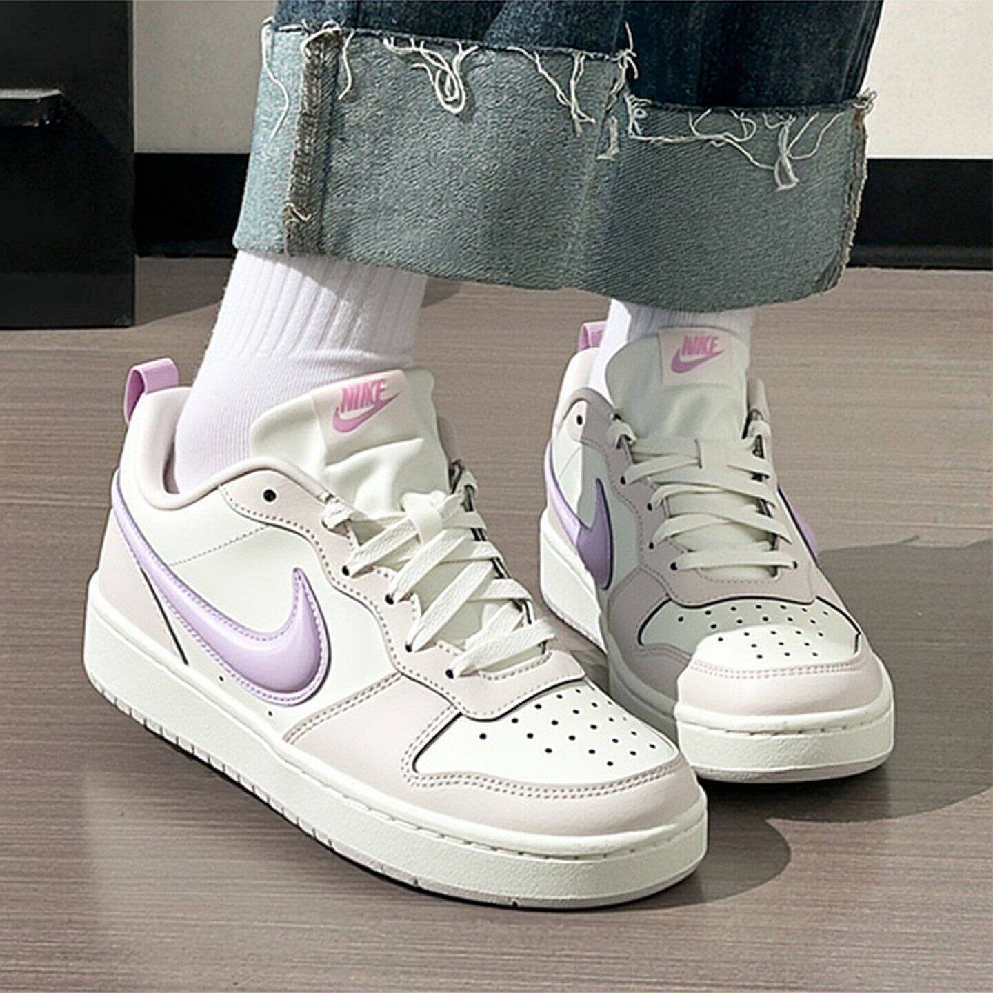 耐克女鞋26春新款大童鞋COURT立体白紫色大勾休闲板鞋IQ9796-151