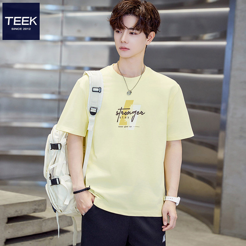 TEEK夏季柠檬黄短袖T恤男纯棉 韩版半袖潮流青少年中学生帅气衣服