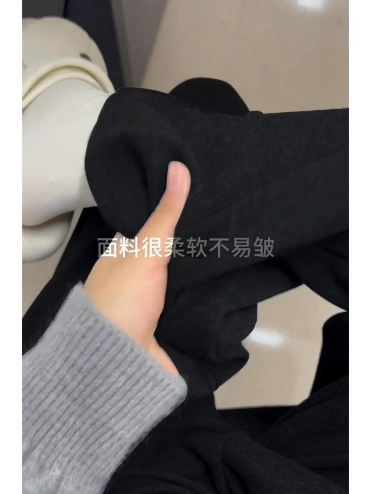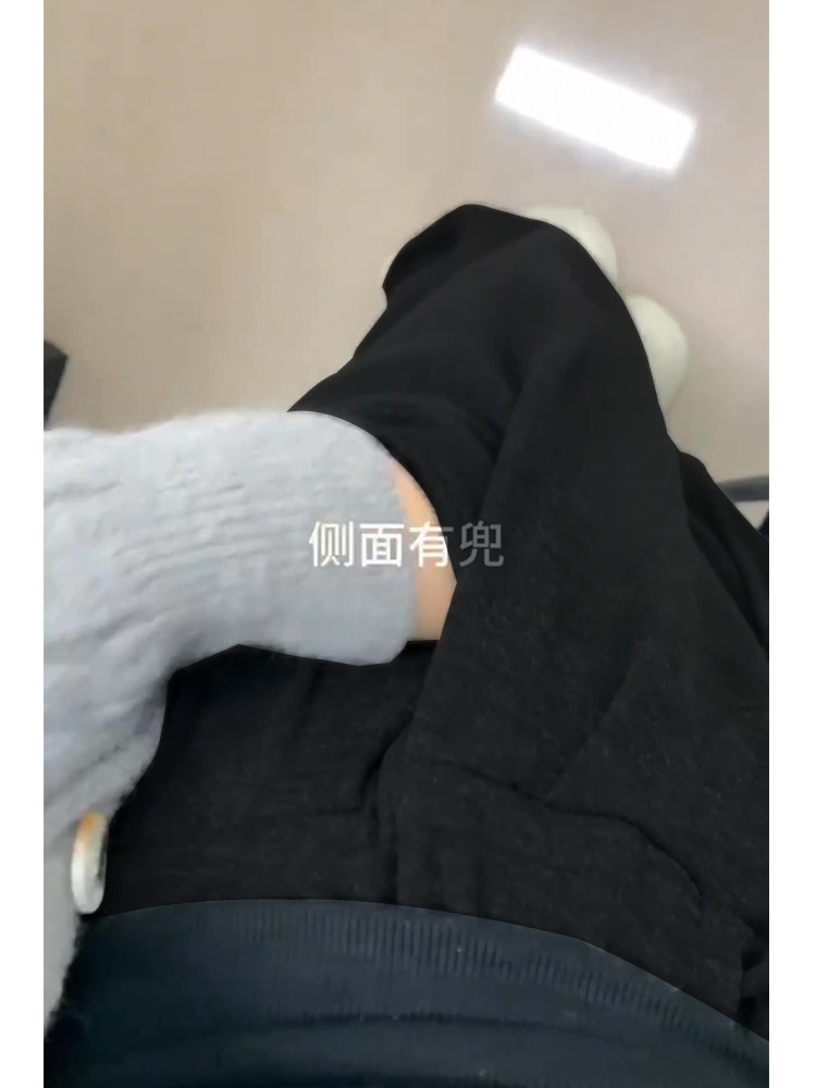 黑色裤子女春款胖mm糯米裤女款小个子大码梨形身材显瘦阔腿休闲裤