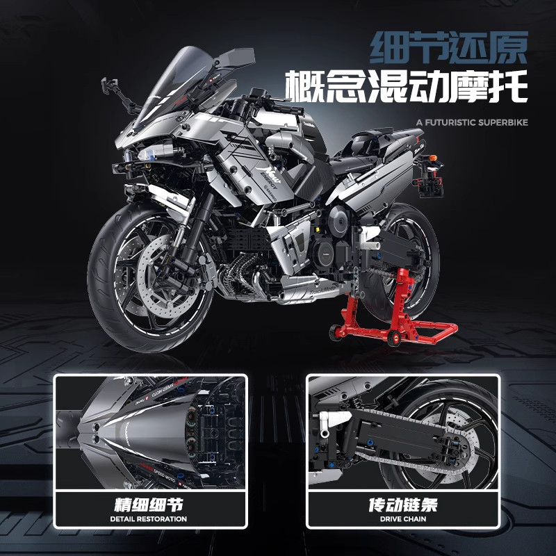 适用乐高电镀银川崎H5摩托车重机车拼装积木科技机械组模型玩具男