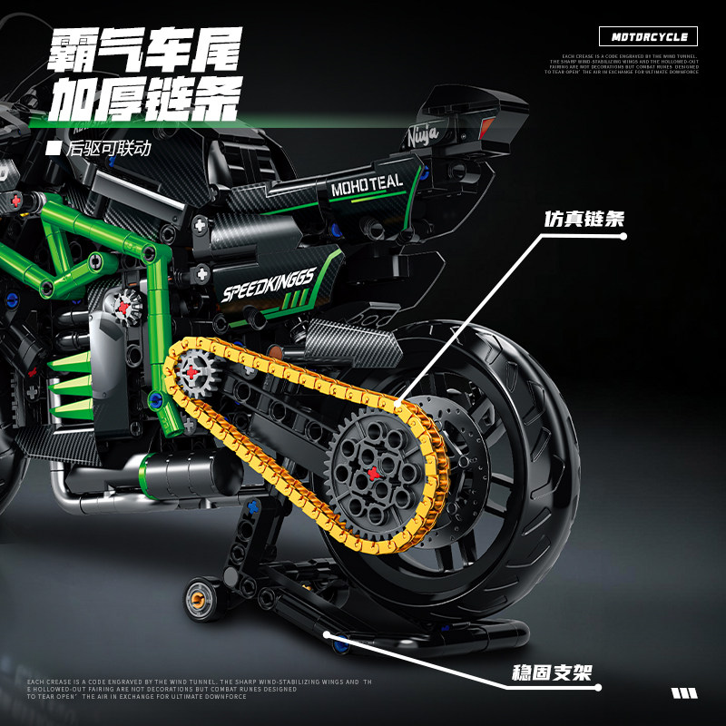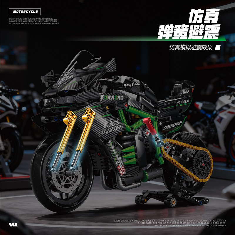 川崎H2摩托车机械组积木拼装巨大型高难度男孩玩具积木模型礼物