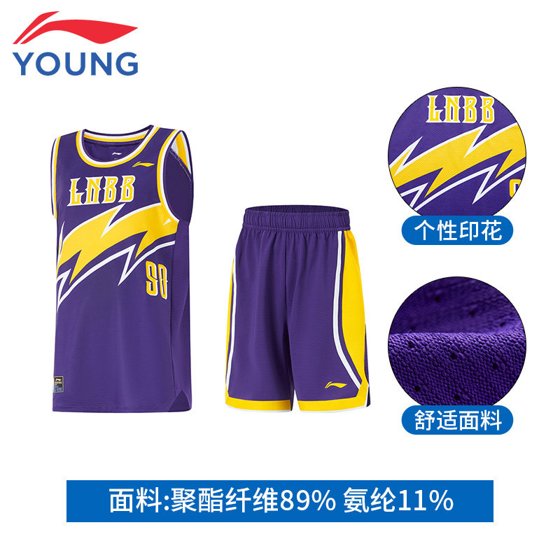 李宁童装儿童比赛套装男童大童新款青少年夏季新款透气运动篮球服