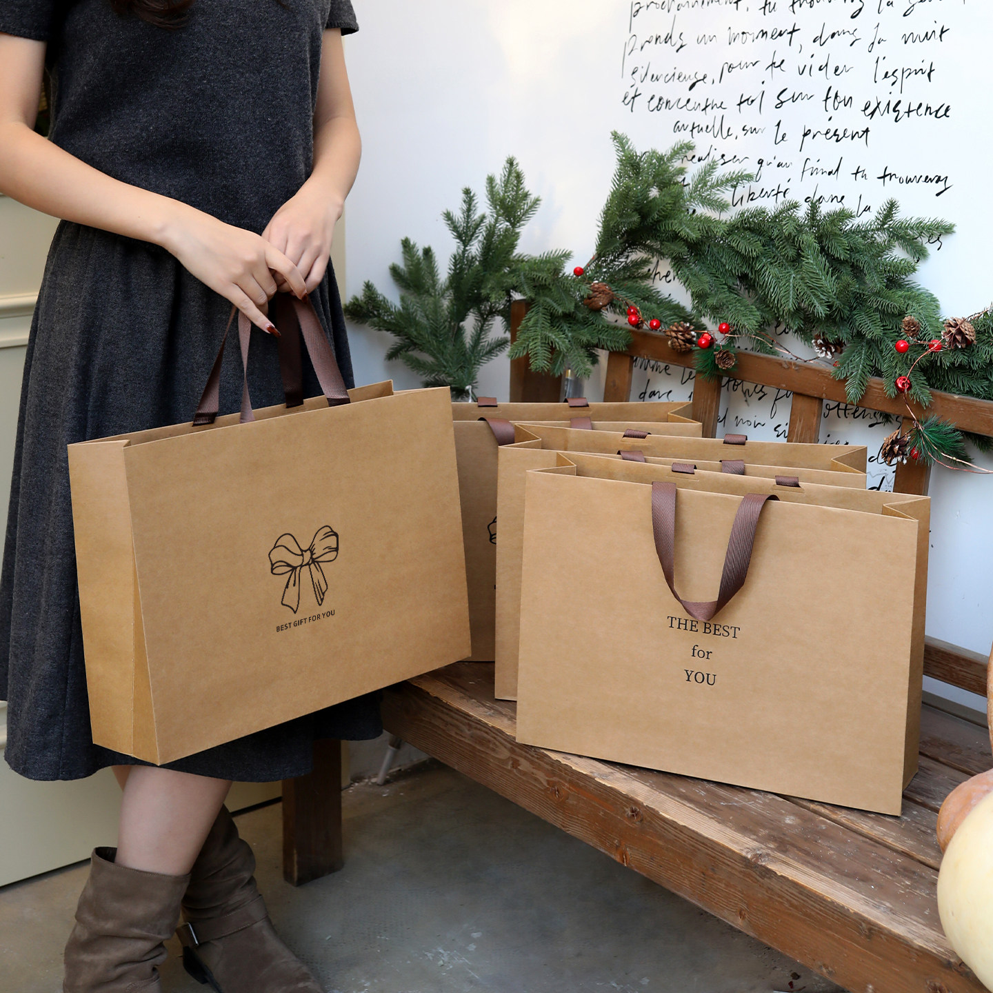 服装店牛皮纸手提袋加厚高级女装衣服用礼品购物打包袋子礼袋定制