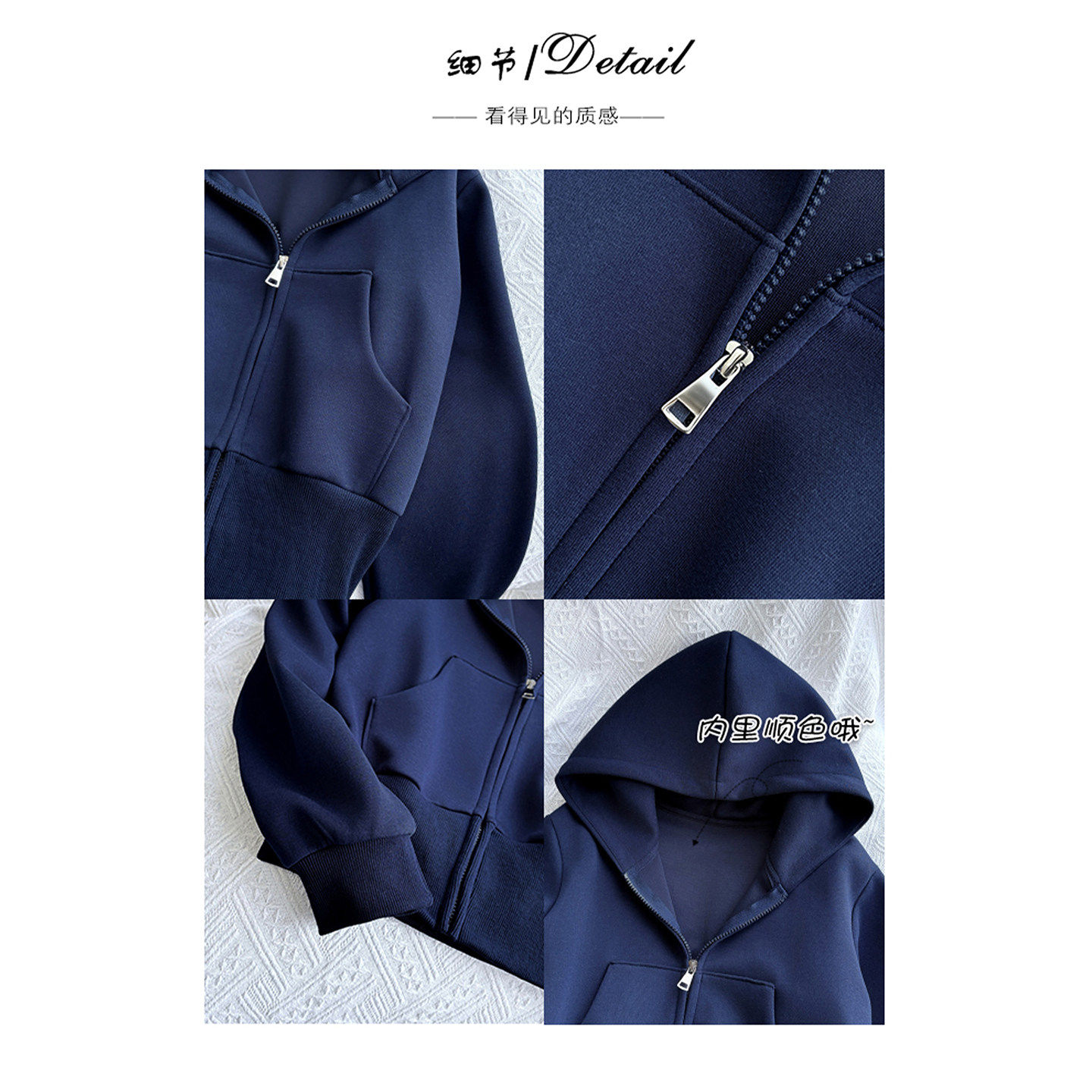 藏青色短款卫衣外套女款春2026新款收腰修身加绒上衣初春韩系穿搭