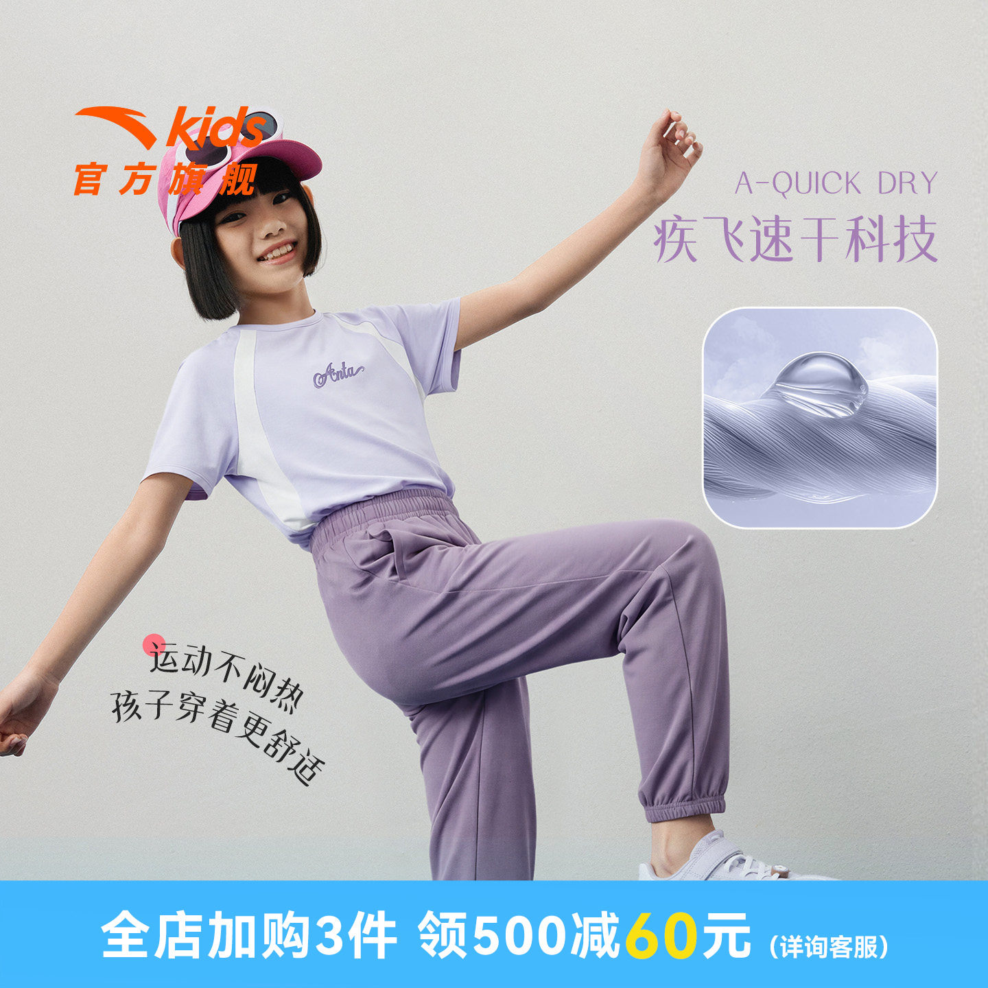 安踏儿童女童运动套装2026年夏季新款亲肤透气中大童速干短袖长裤