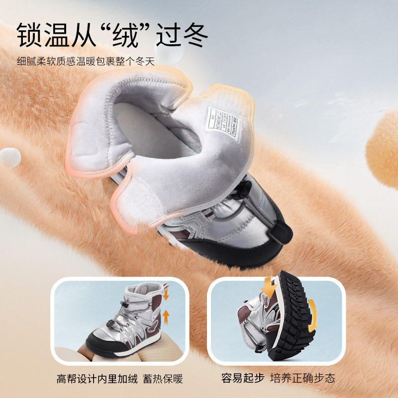 冬季新款男女童加绒保暖耐磨儿童运动靴防溅水拼色学步稳步鞋