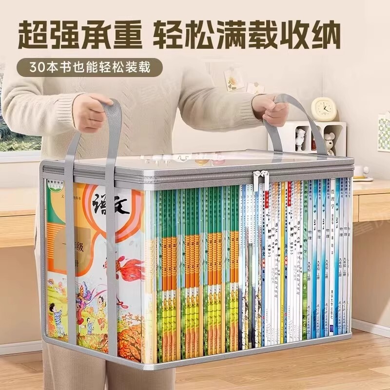 家用折叠收纳箱学生教室书籍袋收纳旧书收纳神器书箱书本透明学校防尘整理袋大容量高中课本防水防潮桌面超大
