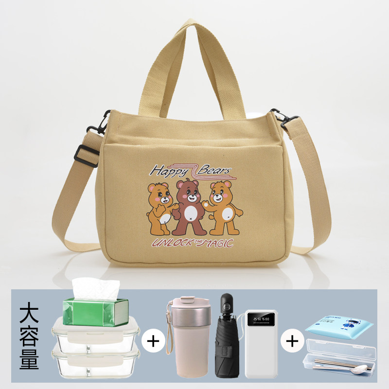 帆布手提包通勤斜挎包上班族带饭便当包大容量饭盒包午餐包小拎包