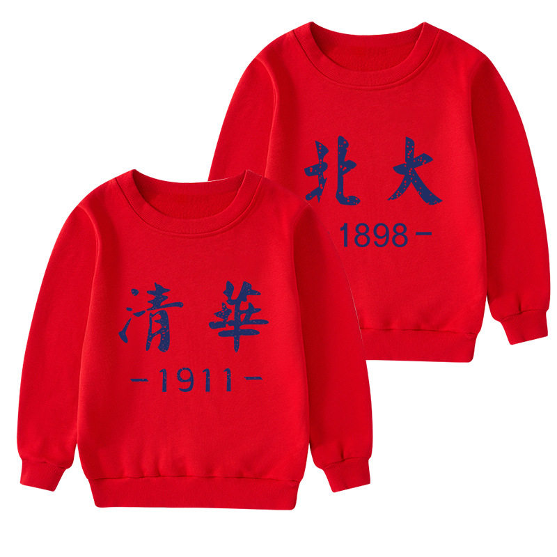 清华北大童装儿童卫衣春秋款男女童纯棉长袖上衣红色白色薄款春装