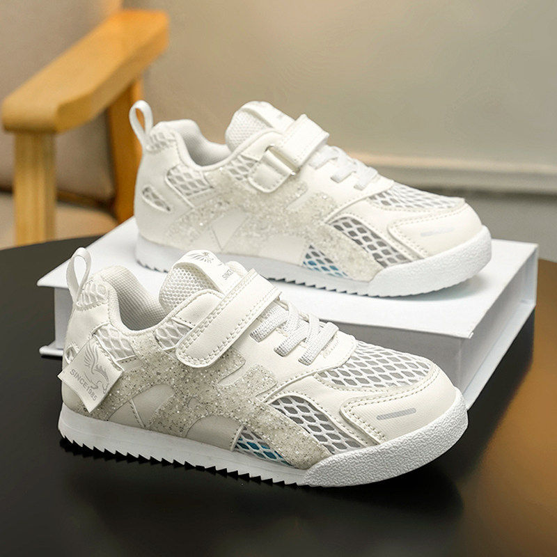 女童鞋子夏季薄款透气网面儿童白色运动鞋女孩阿甘鞋小学生小白鞋