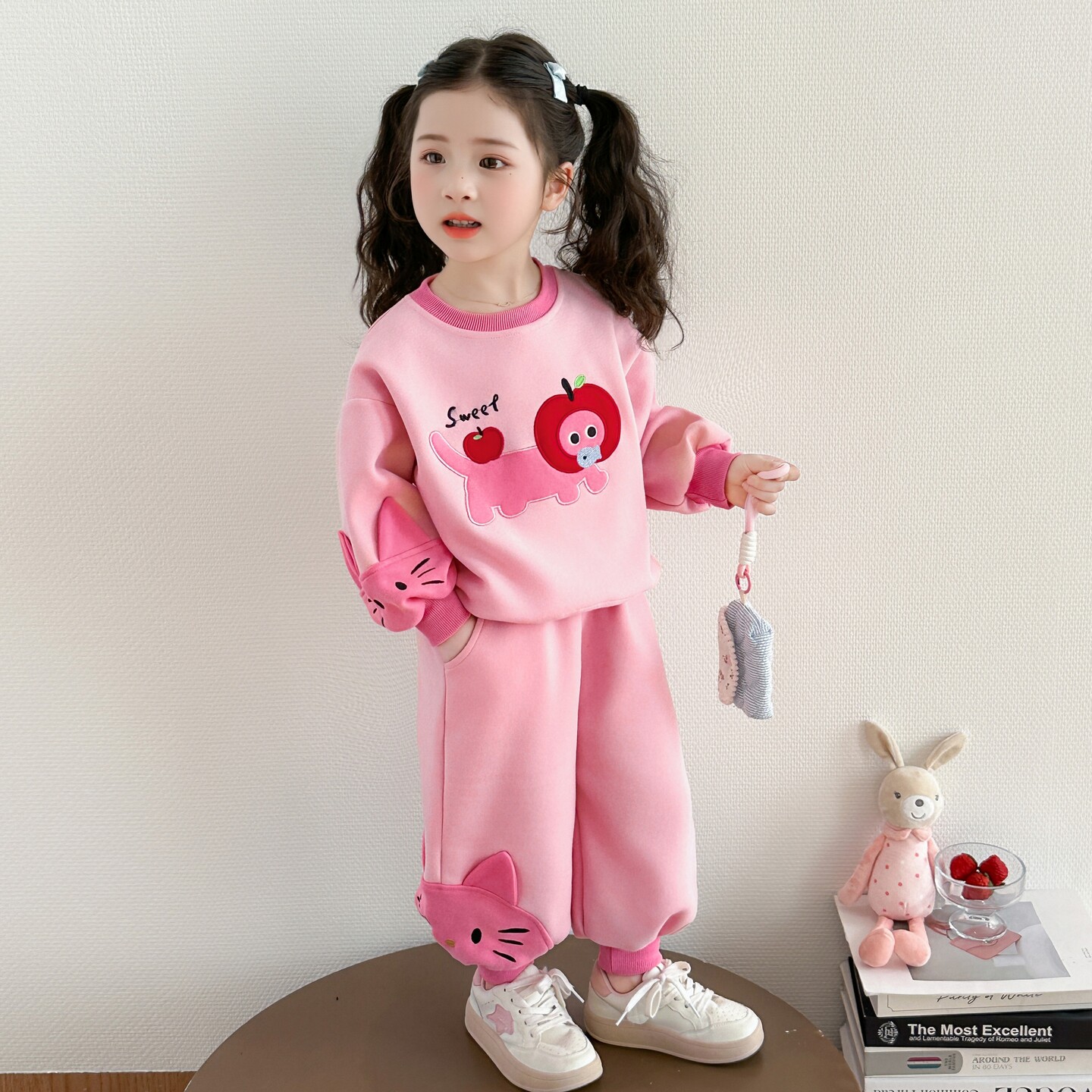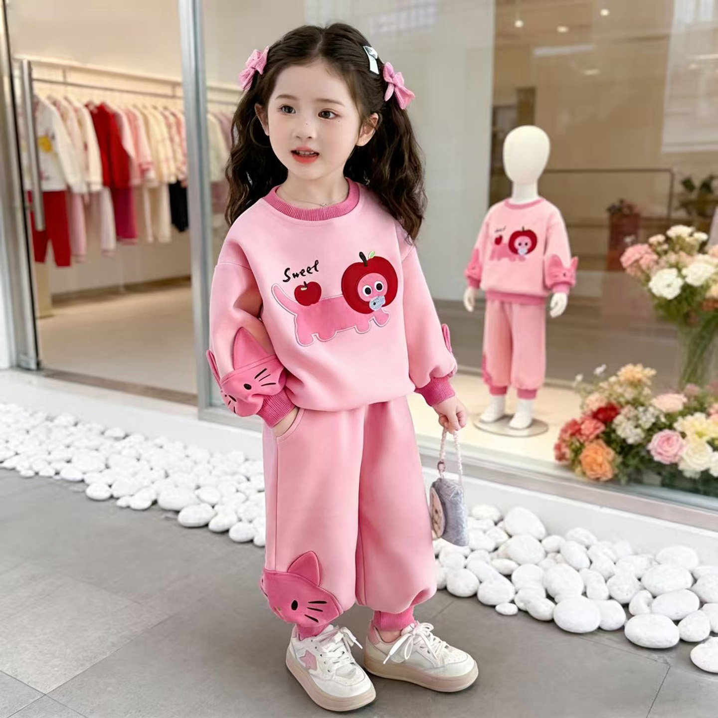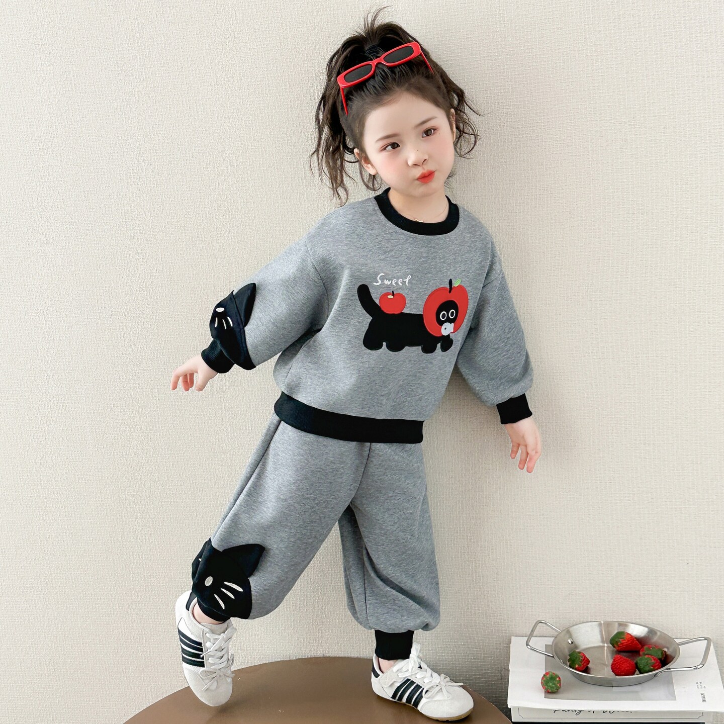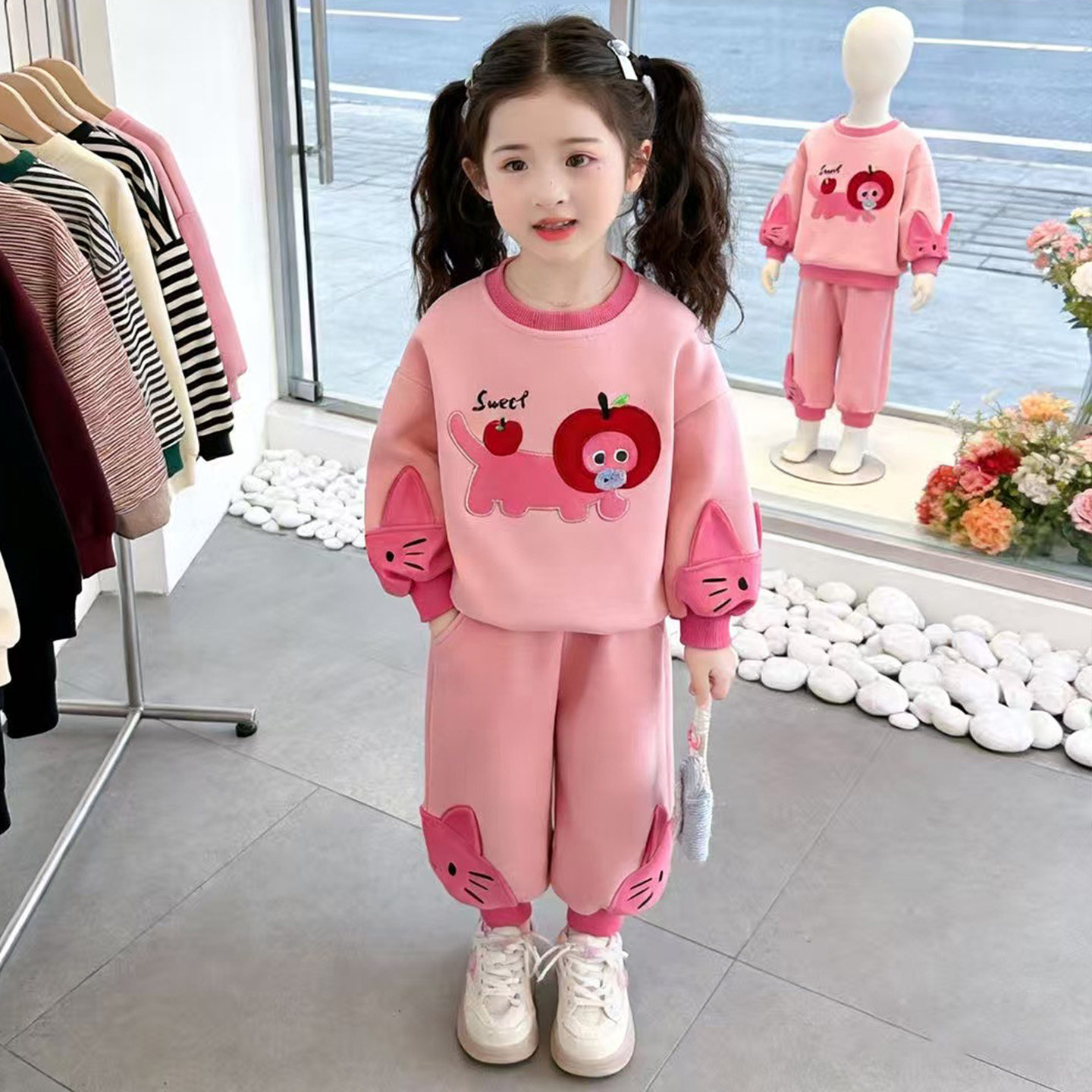 女童猫咪春季卫衣春秋女宝宝洋气2026新款套装儿童时髦两件套春装