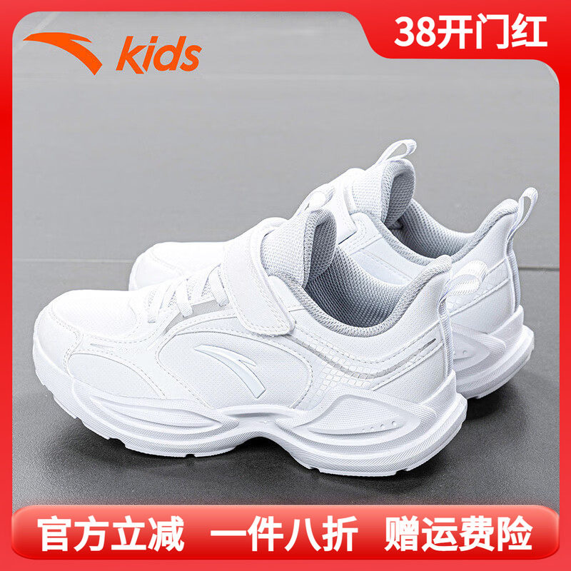 安踏儿童小白鞋男童皮面防水白色运动鞋中大童春季童鞋新款跑步鞋