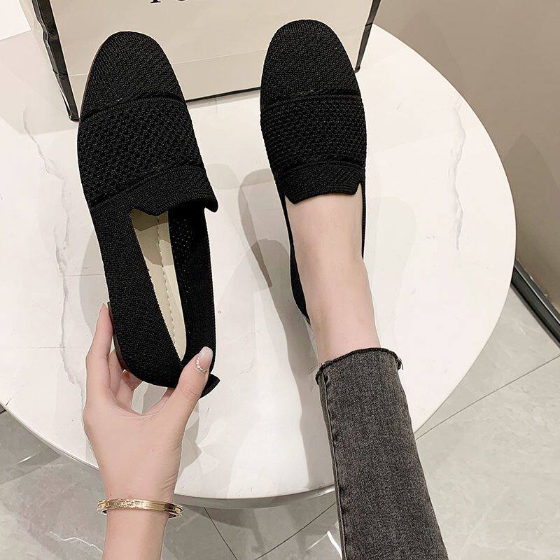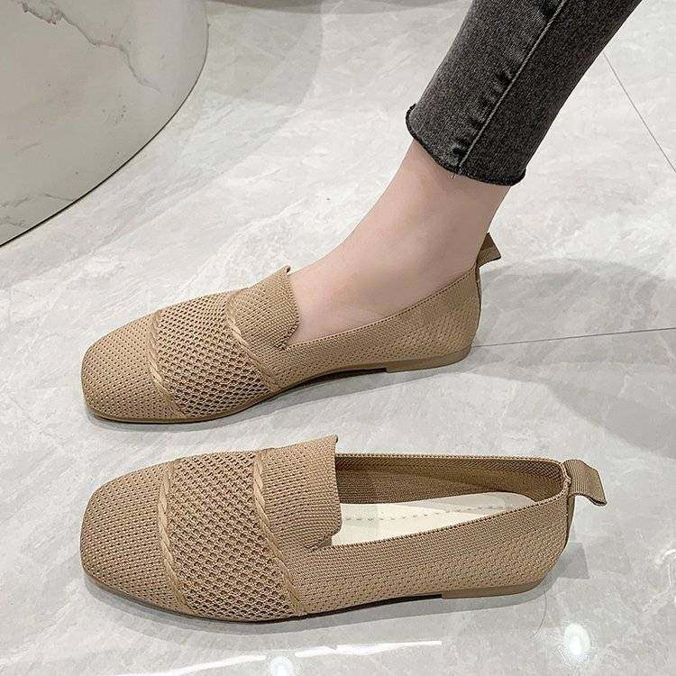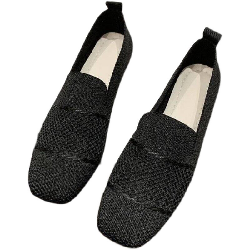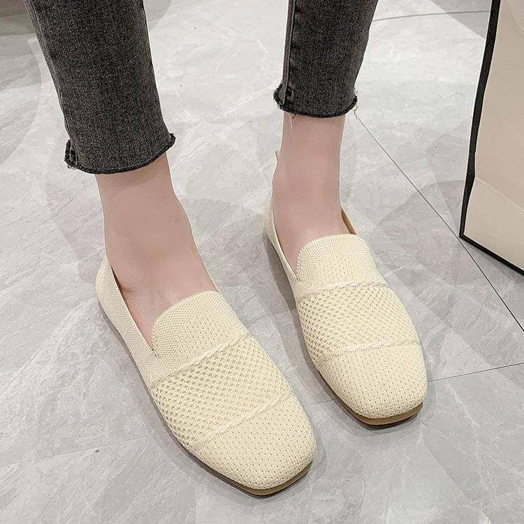 2023夏季新品青年简约一脚蹬透气休闲鞋黑色米色平跟方口时尚女鞋