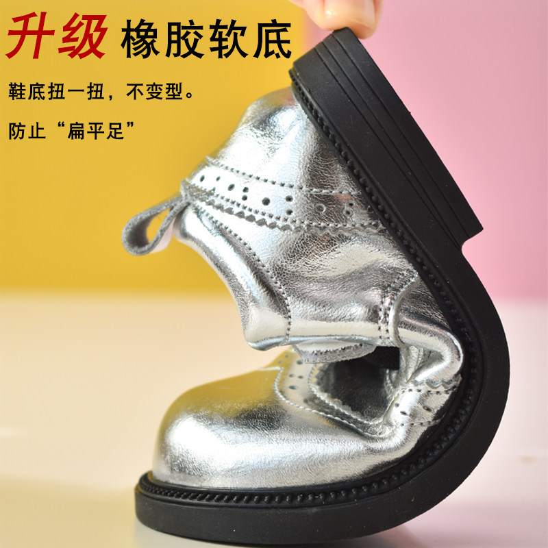 库洛米女童皮鞋洋气银色公主鞋2025春季新款童鞋小女孩真皮软底鞋