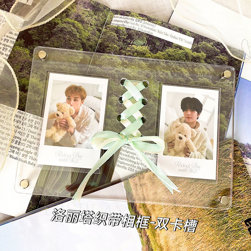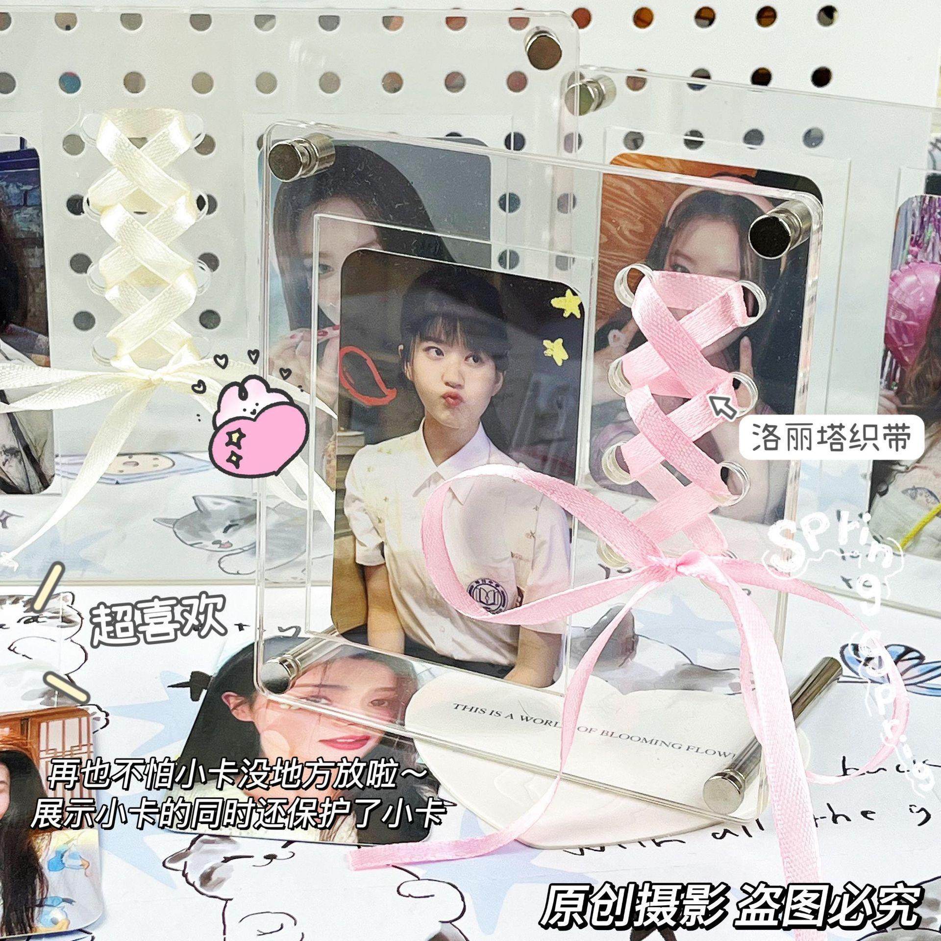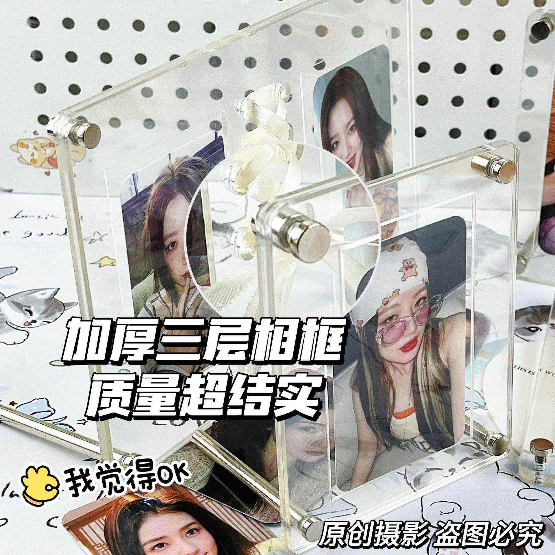 亚克力小卡展示架3寸拍立得相框桌面立牌摆件diy双面透明丝带卡砖