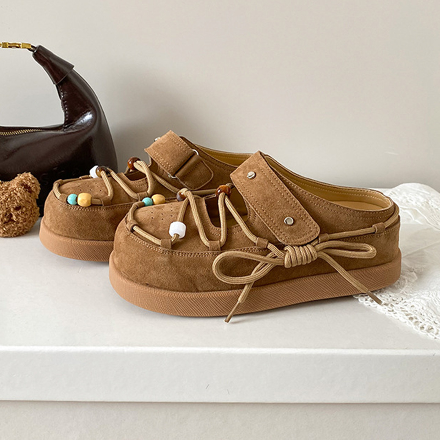 复古真皮6cm内增高勃肯鞋厚底休闲单鞋圆头交叉带懒人包头半拖鞋