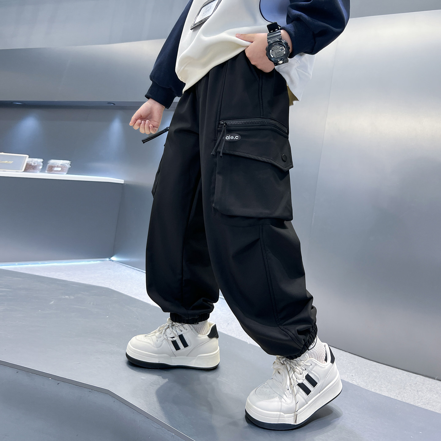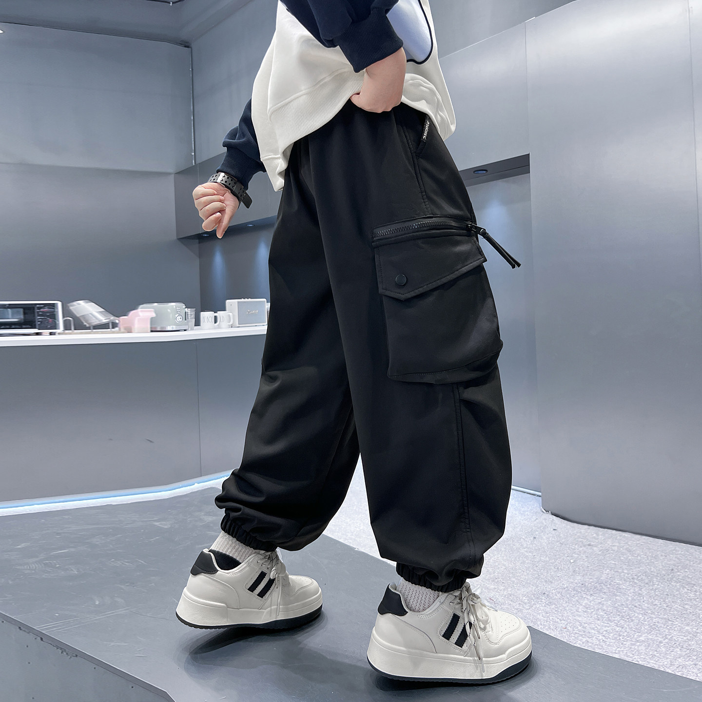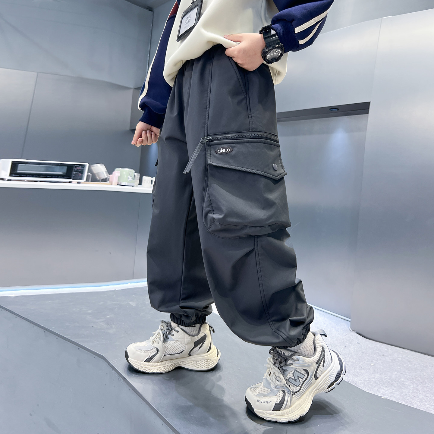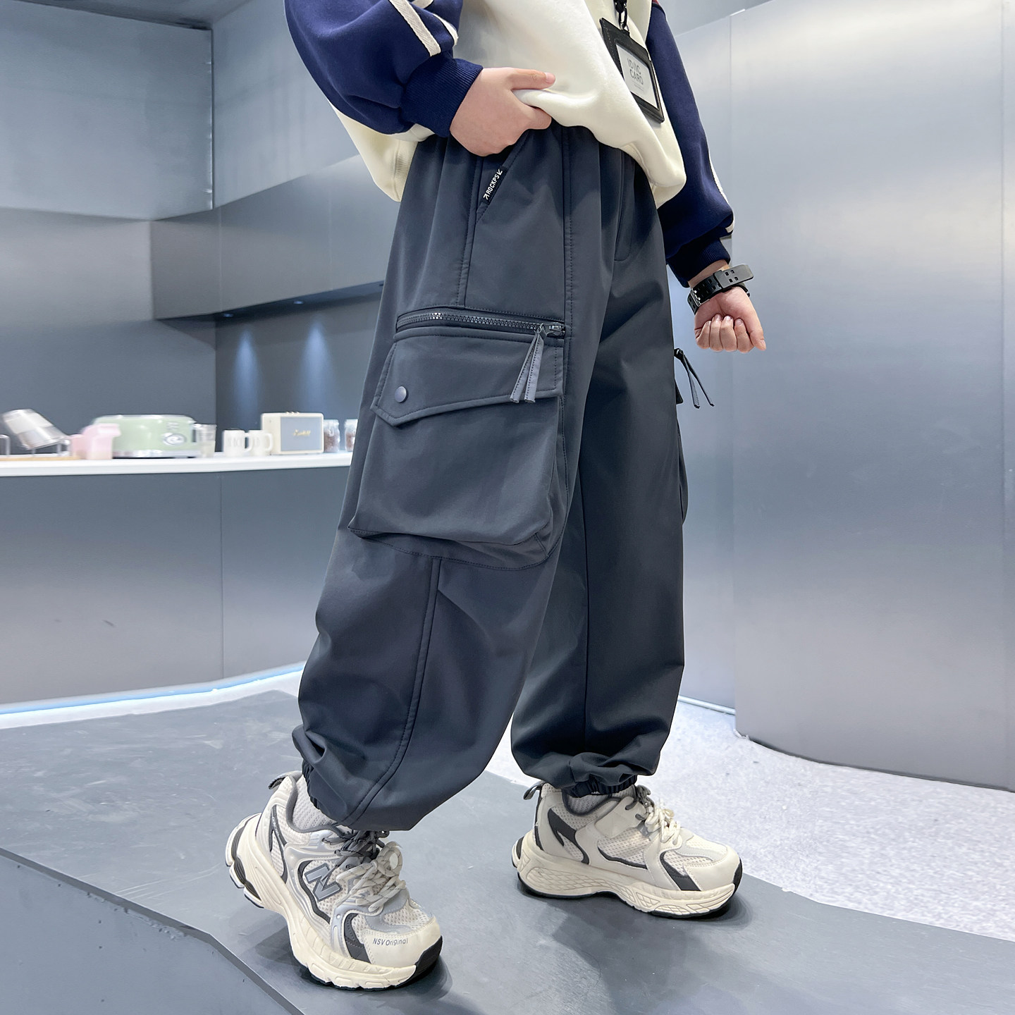 男童冬季潮酷灰色加绒运动工装裤2025新款青少年儿童加厚保暖裤子