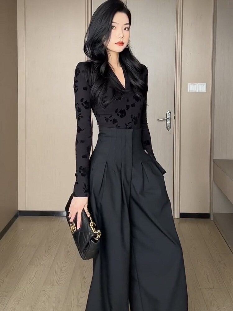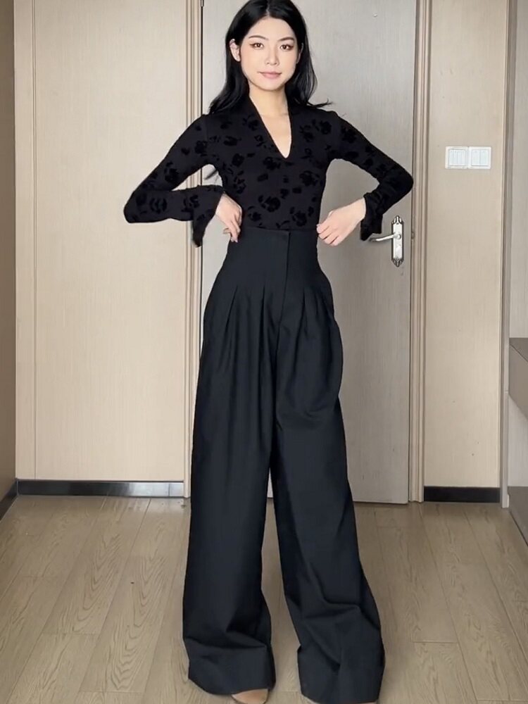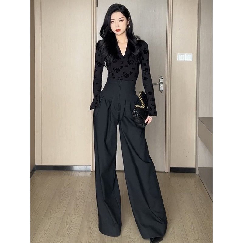高腰阔腿裤女春夏2026新款黑色宽松直筒垂感休闲西装裤拖地长裤子