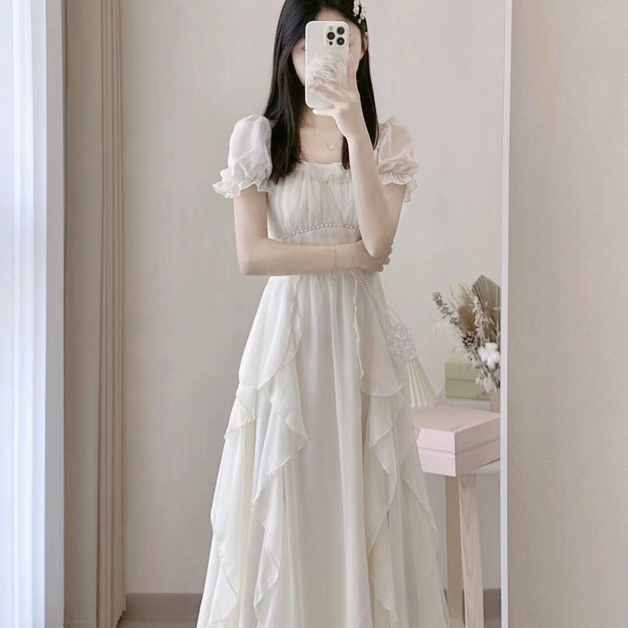 女大童高级感连衣裙夏季初中生法式甜美女孩温柔风超仙仙女长裙子