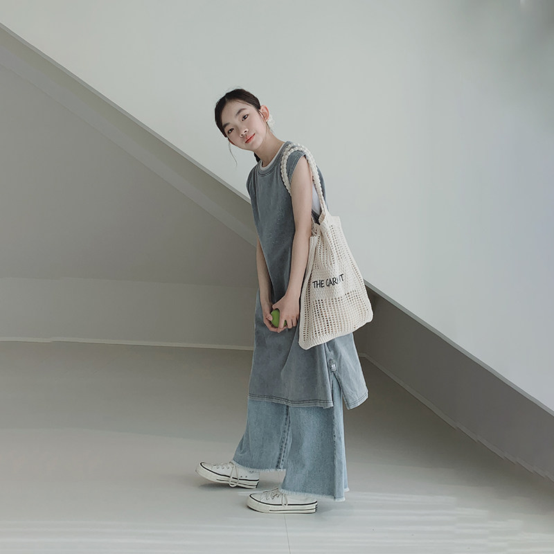 女大童连衣裙2025夏装新款初中生简约背心裙青少年薄款休闲长裙潮