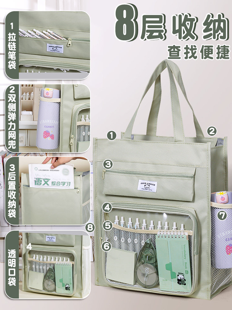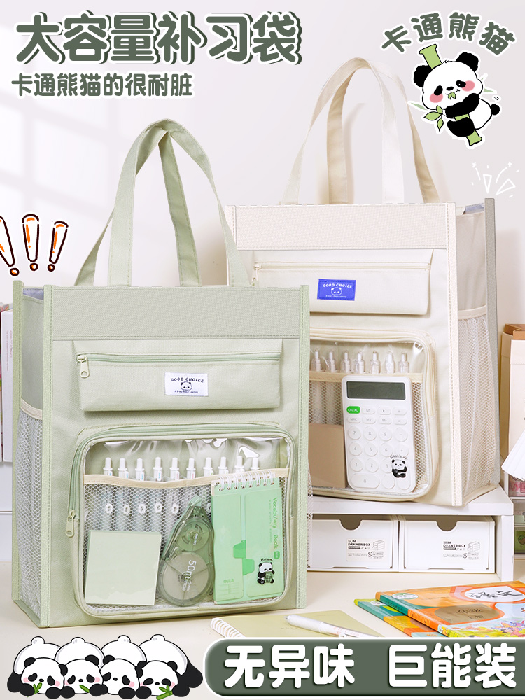 补习袋手提袋拎书袋小学生专用大容量儿童仿布女生美术包女孩补课书袋子初中生学习作业收纳袋男孩补习班书包