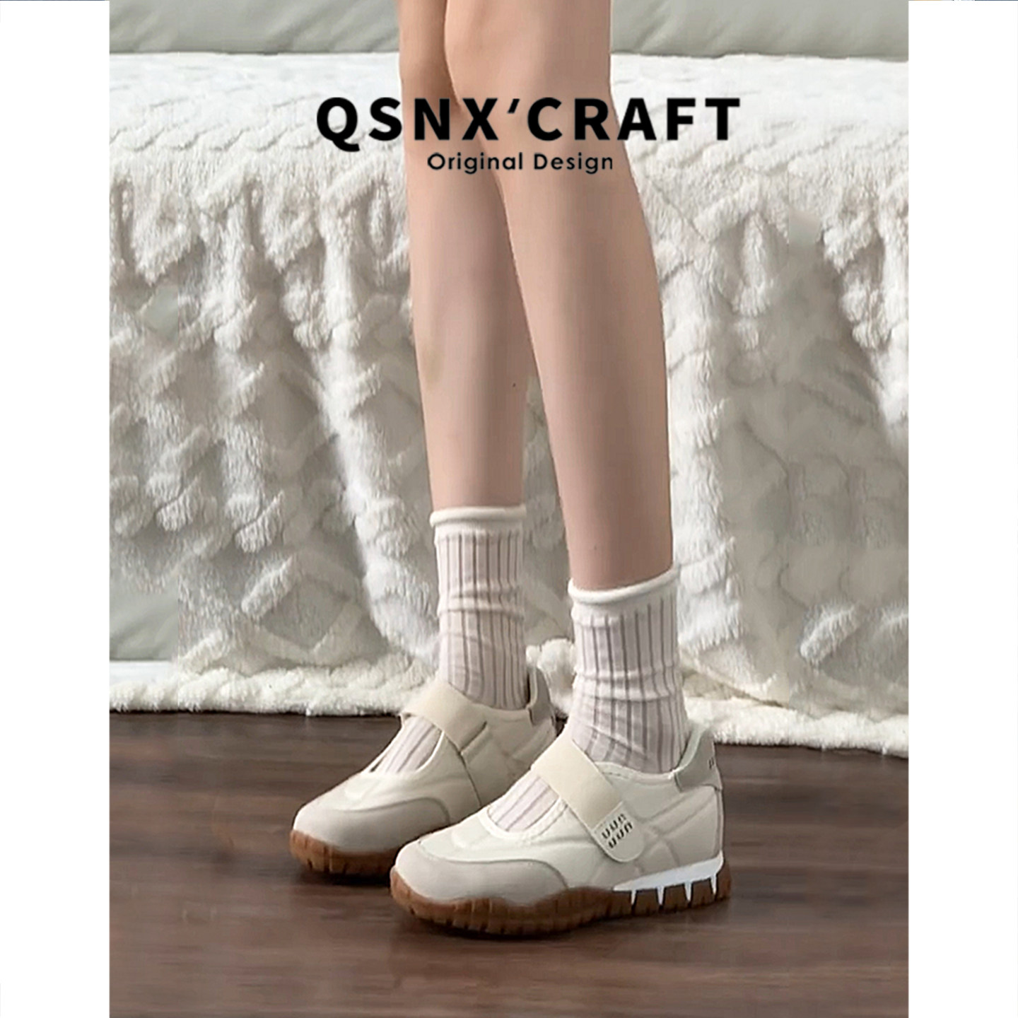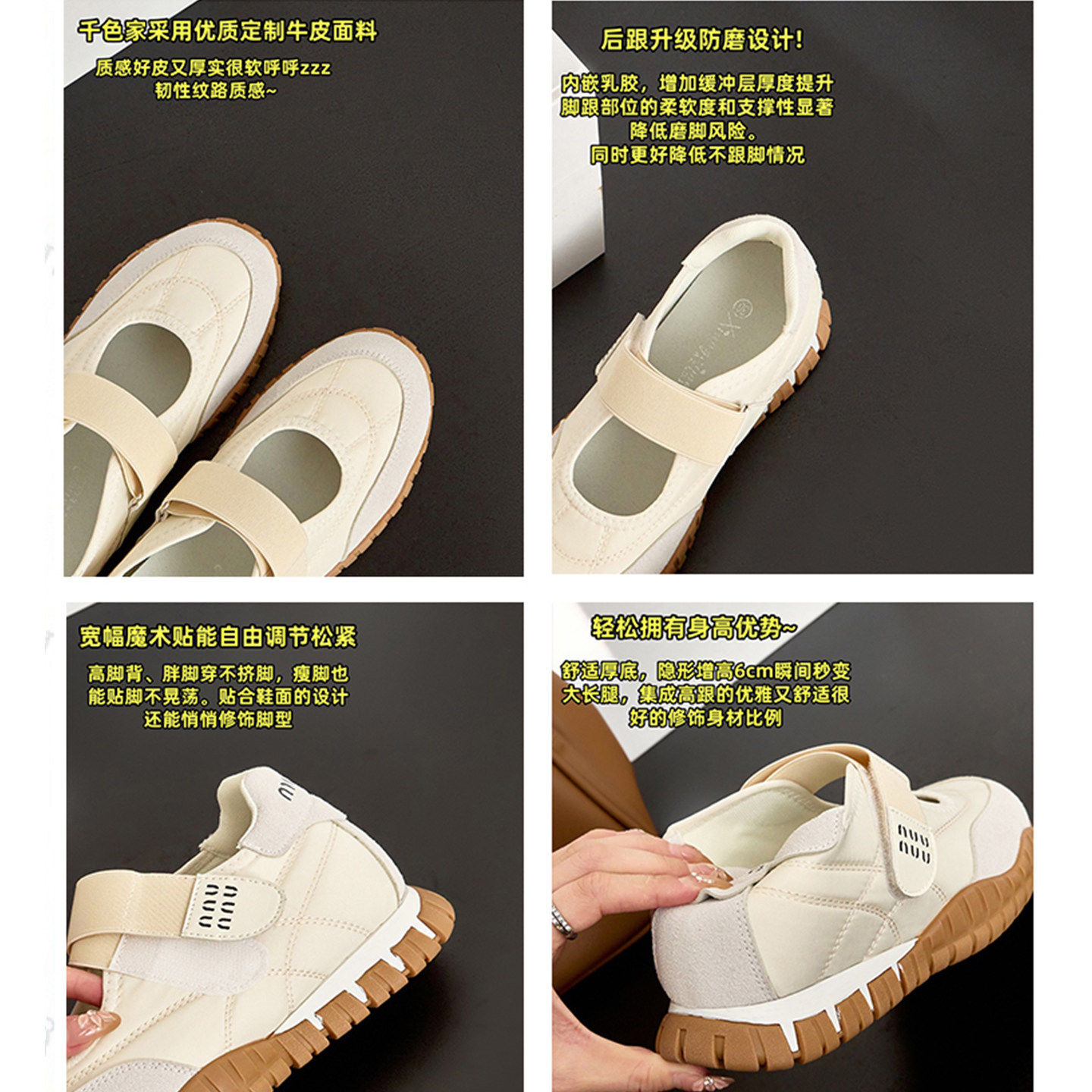 真皮版~魔术贴德训鞋女2025新款内增高玛丽珍休闲运动鞋芭蕾单鞋